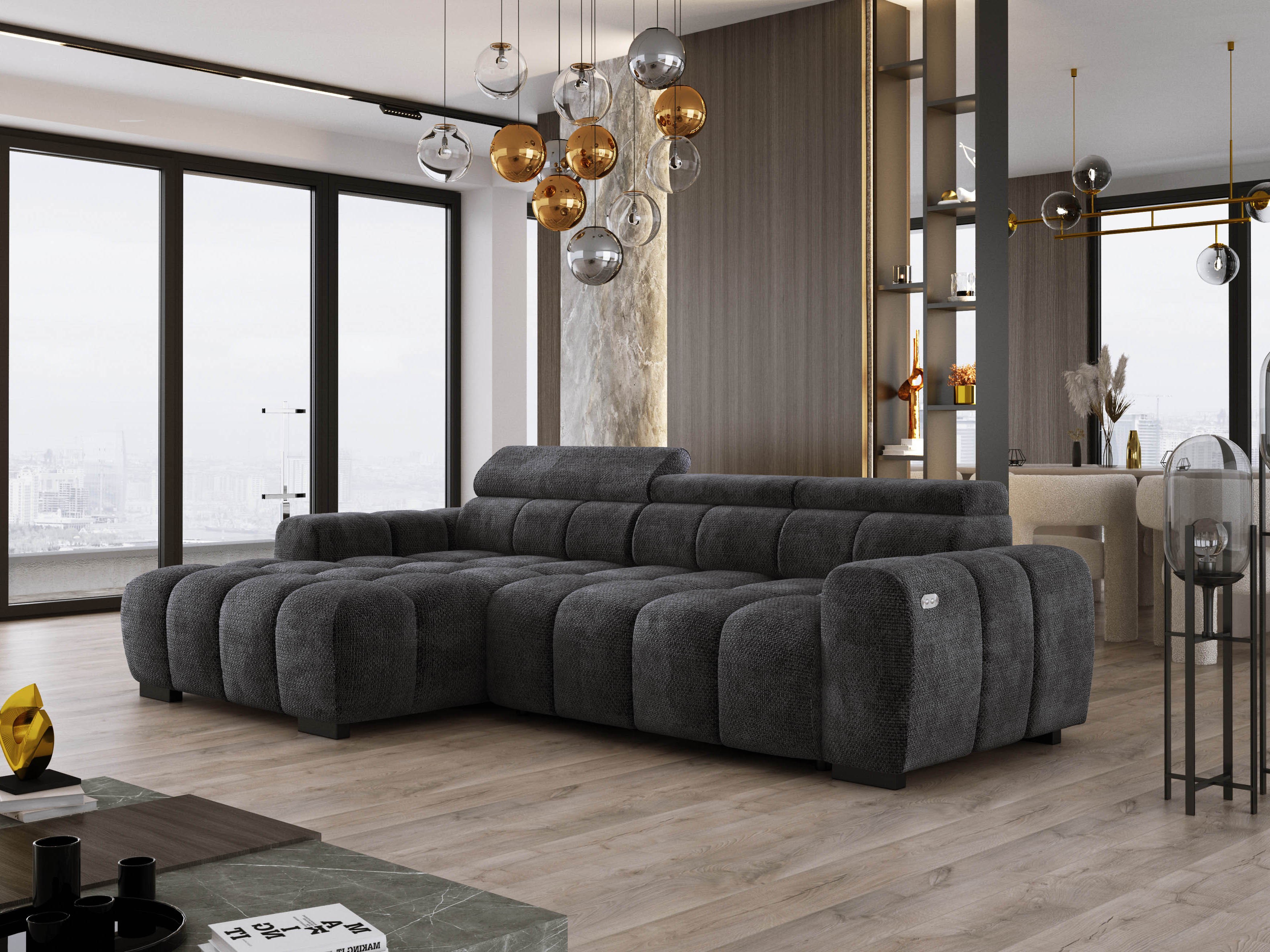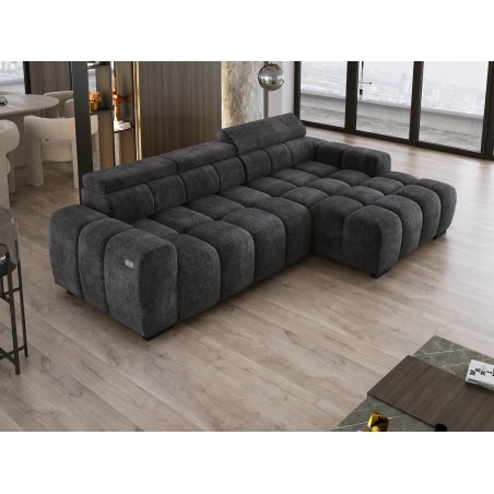 Wyposażony w elektrycznie wysuwane siedzisko (do 27 cm), BULL oferuje wygodną przestrzeń do wypoczynku oraz praktyczną funkcję spania na co dzień. Regulowane zagłówki pozwalają dostosować pozycję do własnych preferencji, zapewniając wygodę podczas relaksu. Dzięki solidnej konstrukcji i wysokiej jakości materiałom narożnik BULL to idealne połączenie komfortu i funkcjonalności.