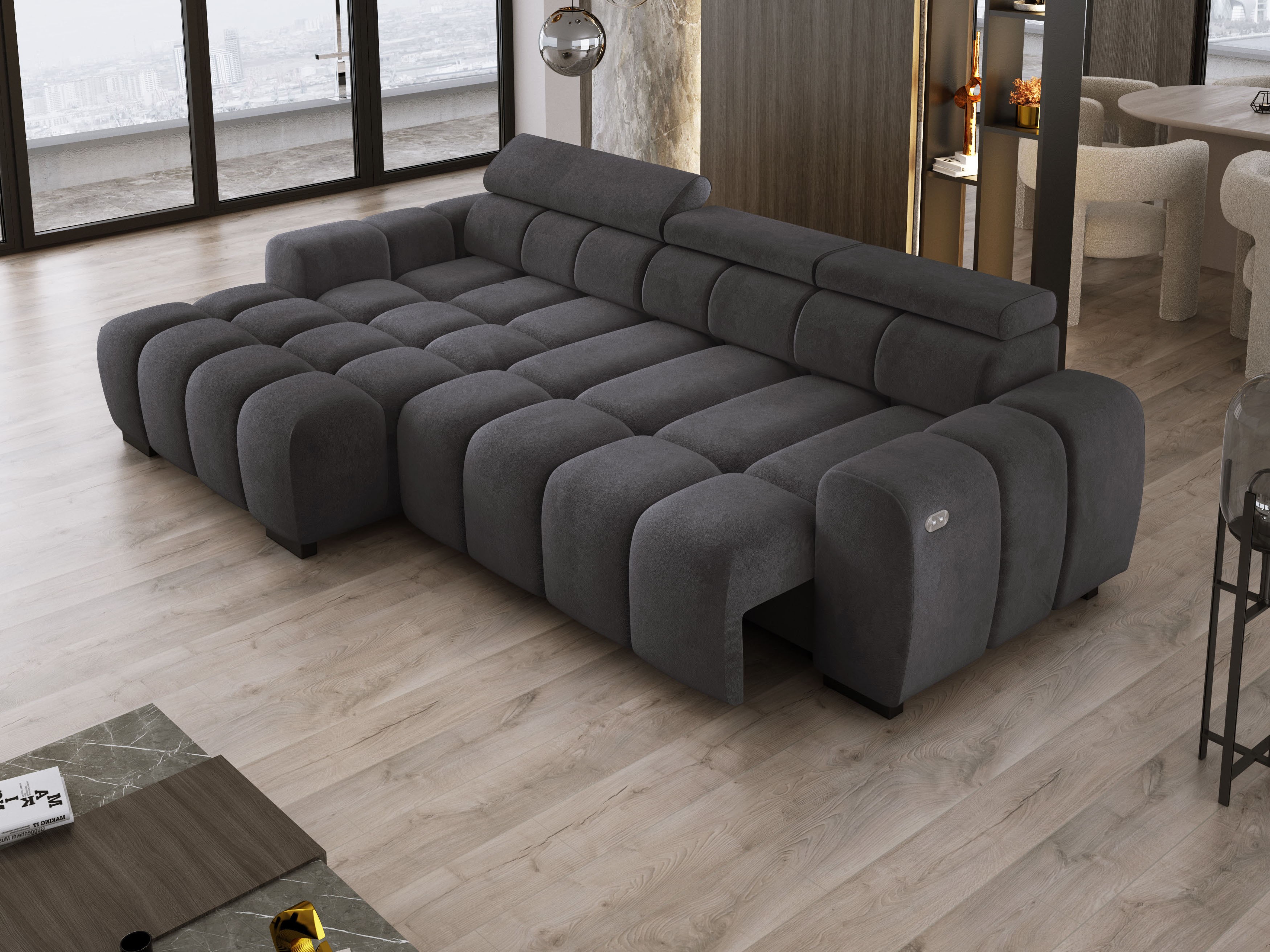 Wyposażony w elektrycznie wysuwane siedzisko (do 27 cm), BULL oferuje wygodną przestrzeń do wypoczynku oraz praktyczną funkcję spania na co dzień. Regulowane zagłówki pozwalają dostosować pozycję do własnych preferencji, zapewniając wygodę podczas relaksu. Dzięki solidnej konstrukcji i wysokiej jakości materiałom narożnik BULL to idealne połączenie komfortu i funkcjonalności.