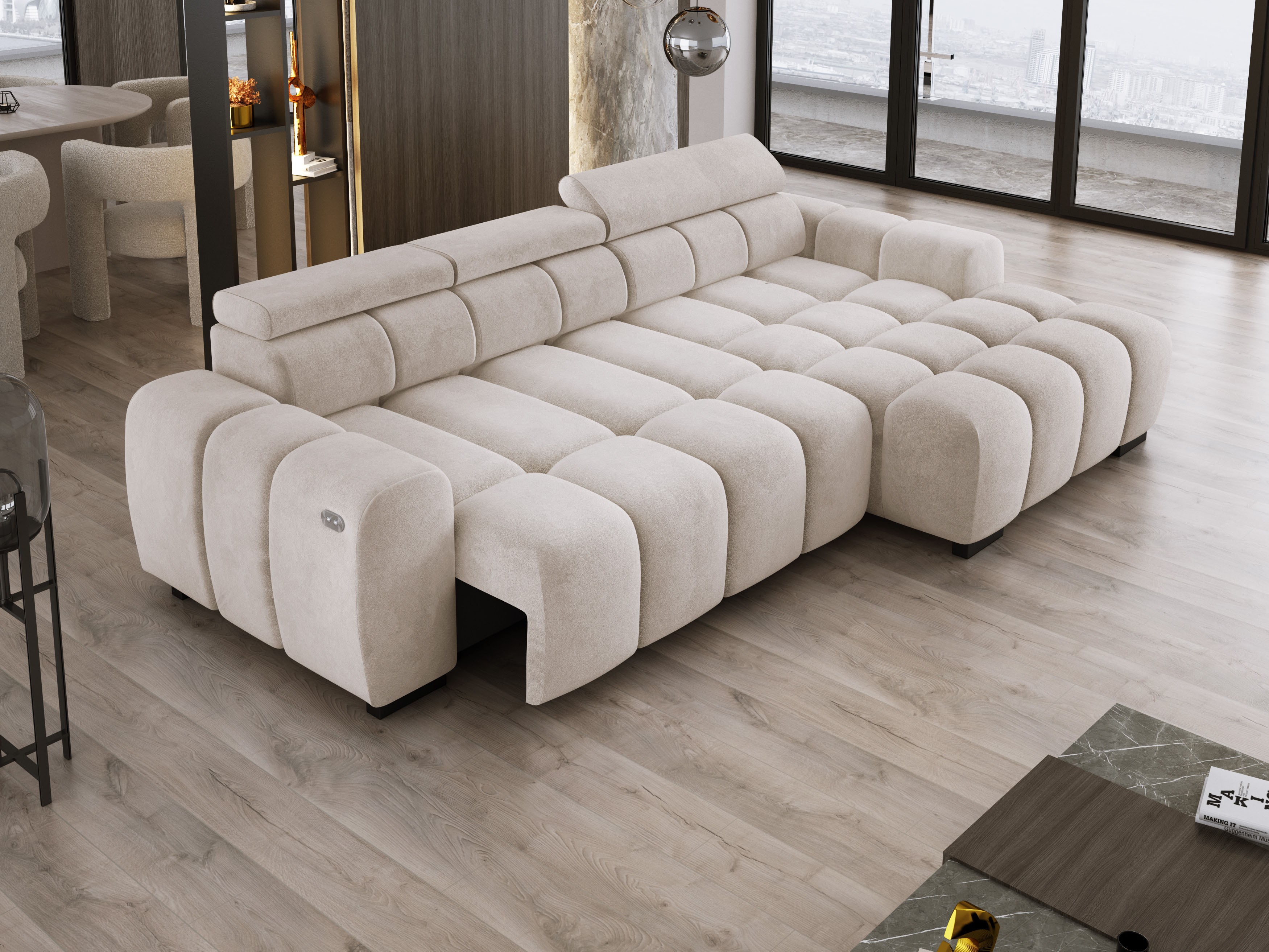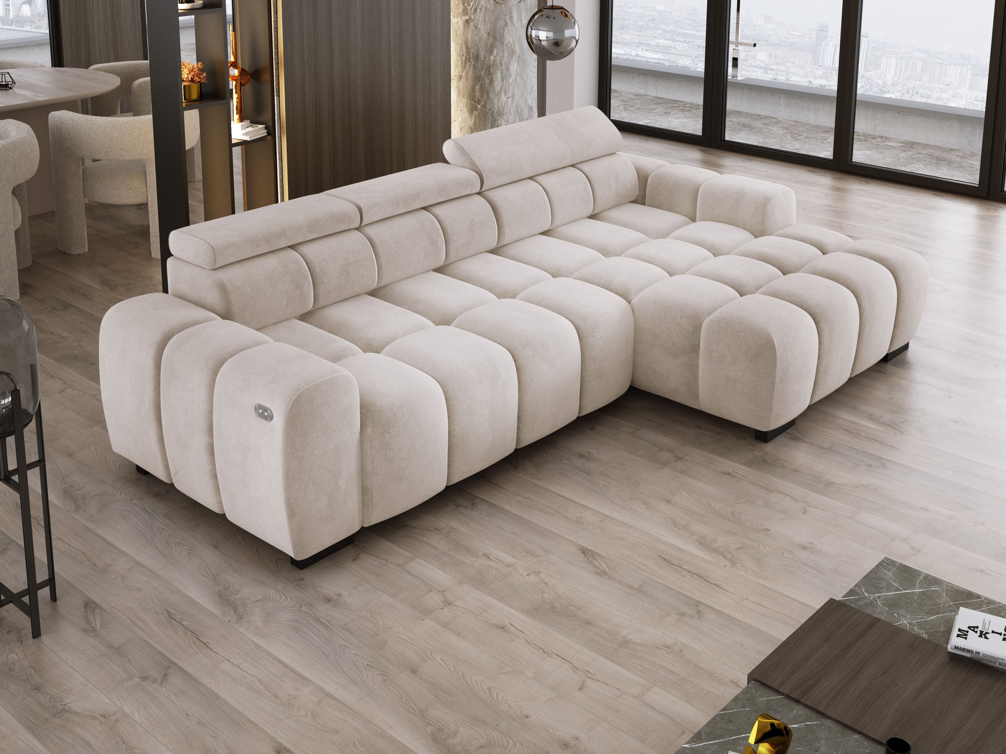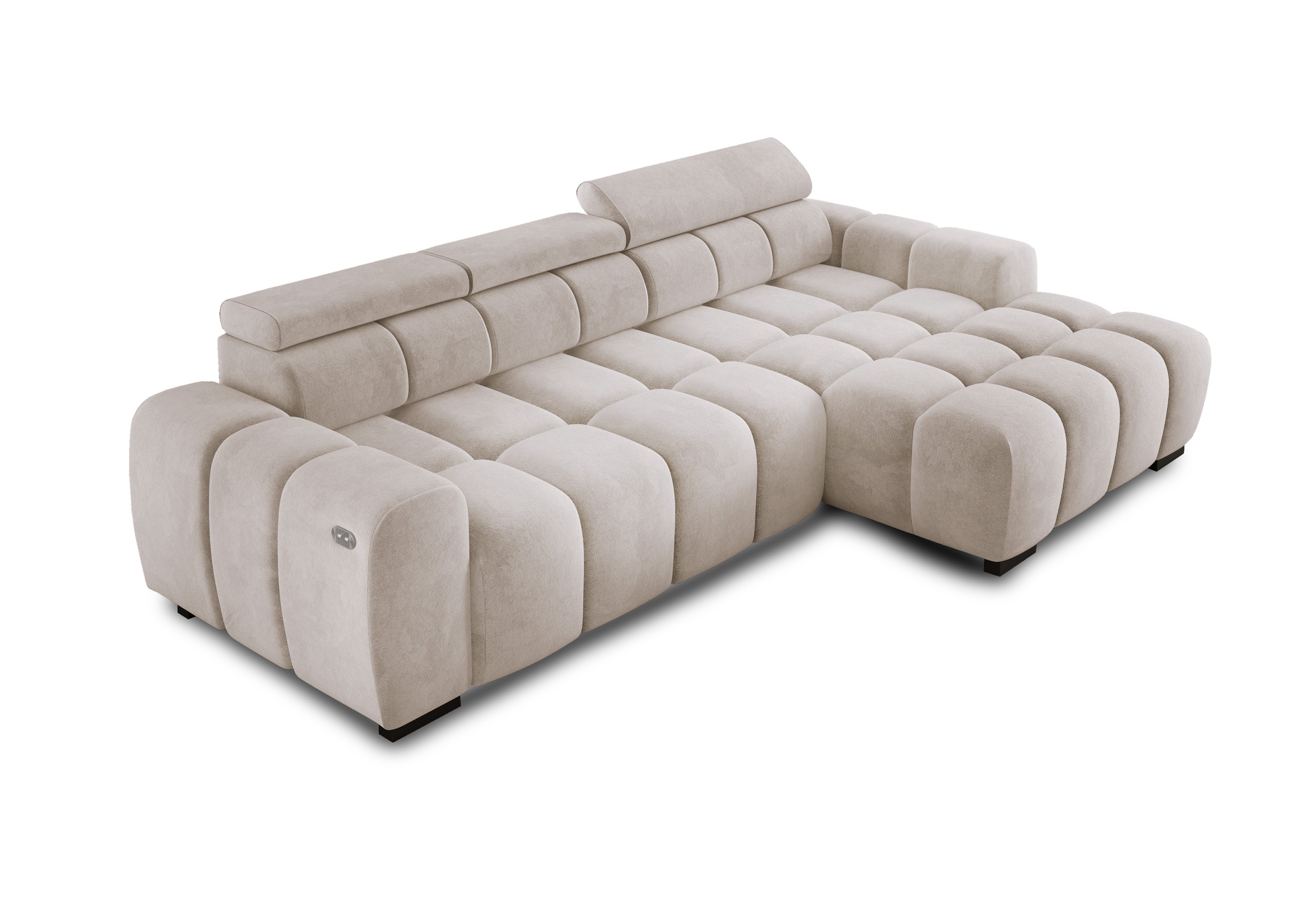 Wyposażony w elektrycznie wysuwane siedzisko (do 27 cm), BULL oferuje wygodną przestrzeń do wypoczynku oraz praktyczną funkcję spania na co dzień. Regulowane zagłówki pozwalają dostosować pozycję do własnych preferencji, zapewniając wygodę podczas relaksu. Dzięki solidnej konstrukcji i wysokiej jakości materiałom narożnik BULL to idealne połączenie komfortu i funkcjonalności.