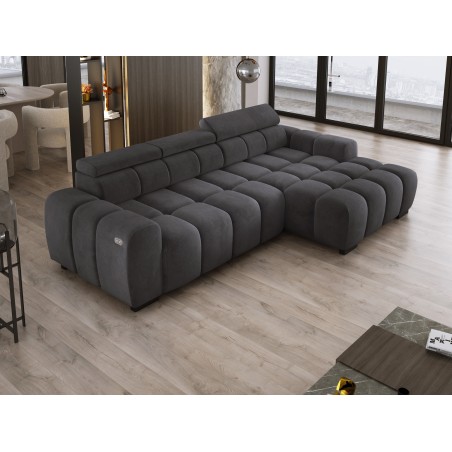 Wyposażony w elektrycznie wysuwane siedzisko (do 27 cm), BULL oferuje wygodną przestrzeń do wypoczynku oraz praktyczną funkcję spania na co dzień. Regulowane zagłówki pozwalają dostosować pozycję do własnych preferencji, zapewniając wygodę podczas relaksu. Dzięki solidnej konstrukcji i wysokiej jakości materiałom narożnik BULL to idealne połączenie komfortu i funkcjonalności.