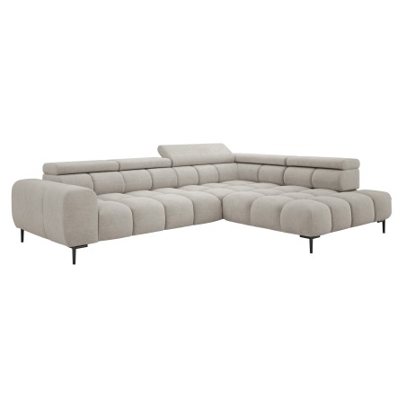 Stylowe pikowane siedzisko i wysokie metalowe nóżki (dostępne w kolorze czarnym lub złotym) nadają narożnikowi lekko loftowy, a jednocześnie nowoczesny charakter.
