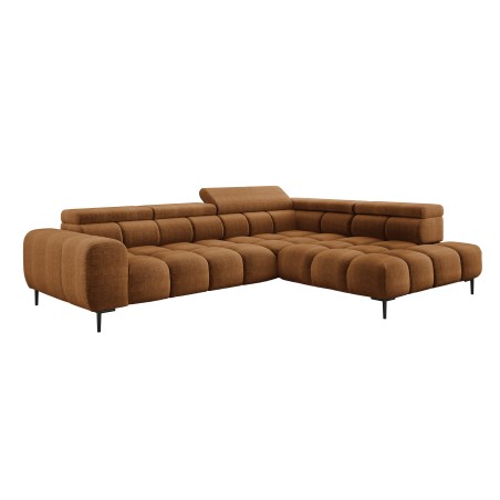 Stylowe pikowane siedzisko i wysokie metalowe nóżki (dostępne w kolorze czarnym lub złotym) nadają narożnikowi lekko loftowy, a jednocześnie nowoczesny charakter.