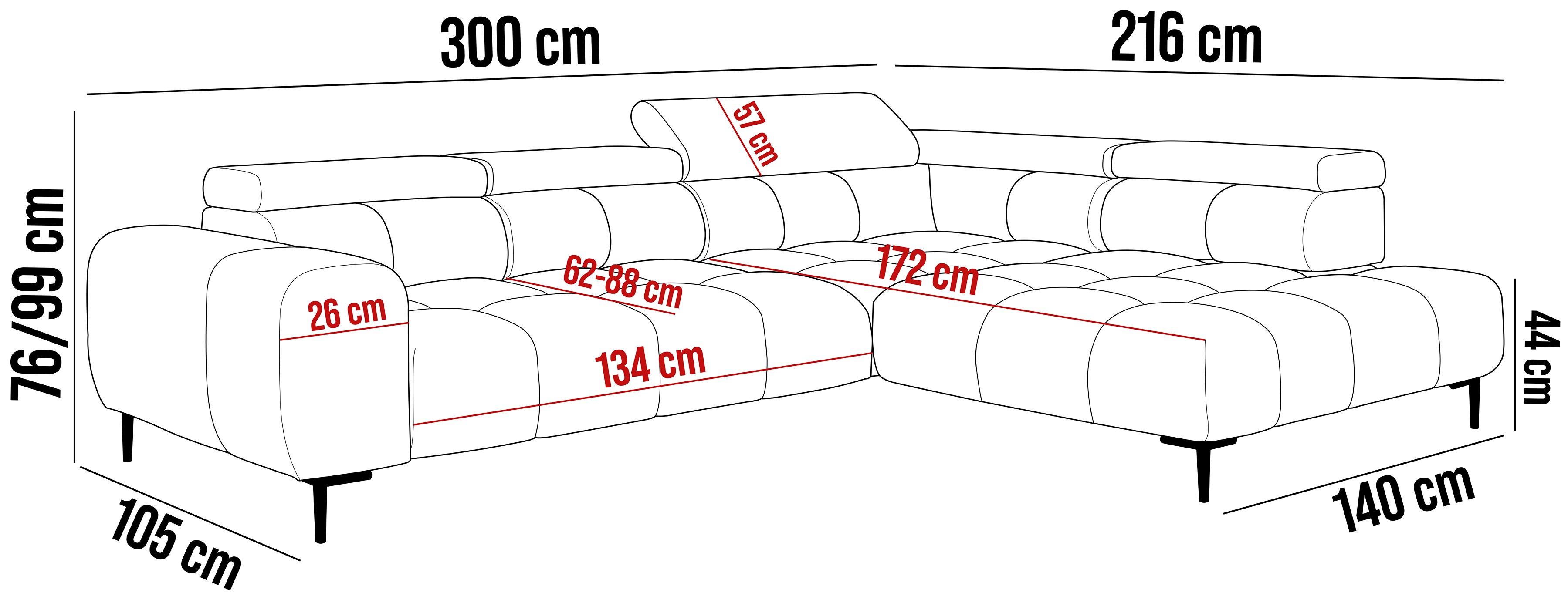 300x216x99 cm