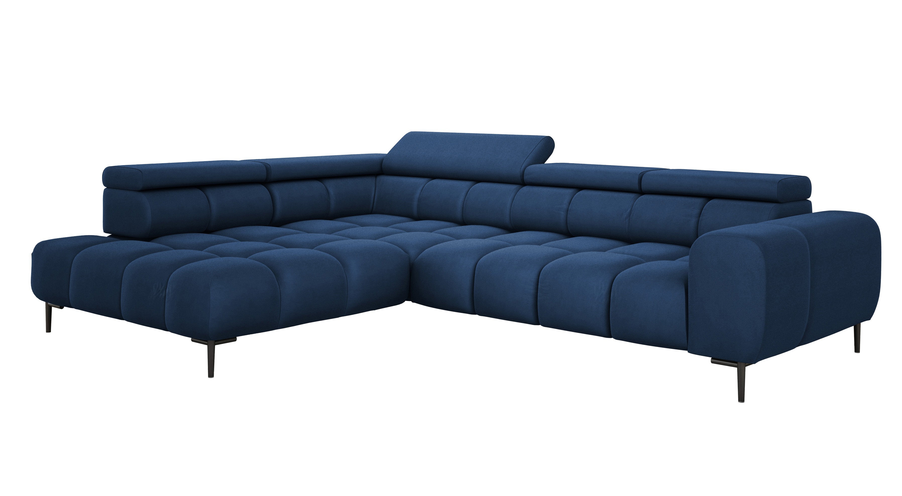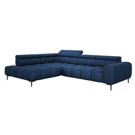 Stylowe pikowane siedzisko i wysokie metalowe nóżki (dostępne w kolorze czarnym lub złotym) nadają narożnikowi lekko loftowy, a jednocześnie nowoczesny charakter.