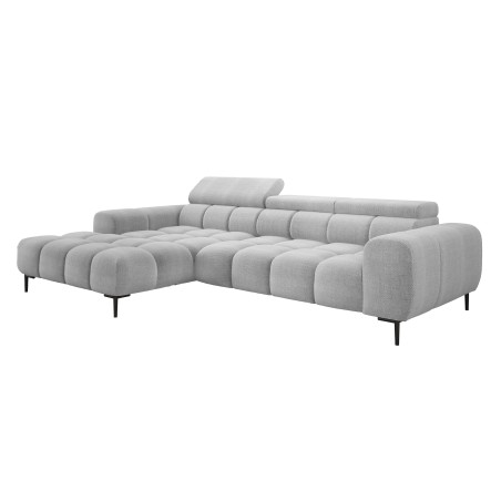 Pikowane siedzisko nadaje narożnikowi nowoczesnego charakteru, a wysokie metalowe nóżki (czarne lub złote) w stylu loftowym dodają mu lekkości i elegancji.