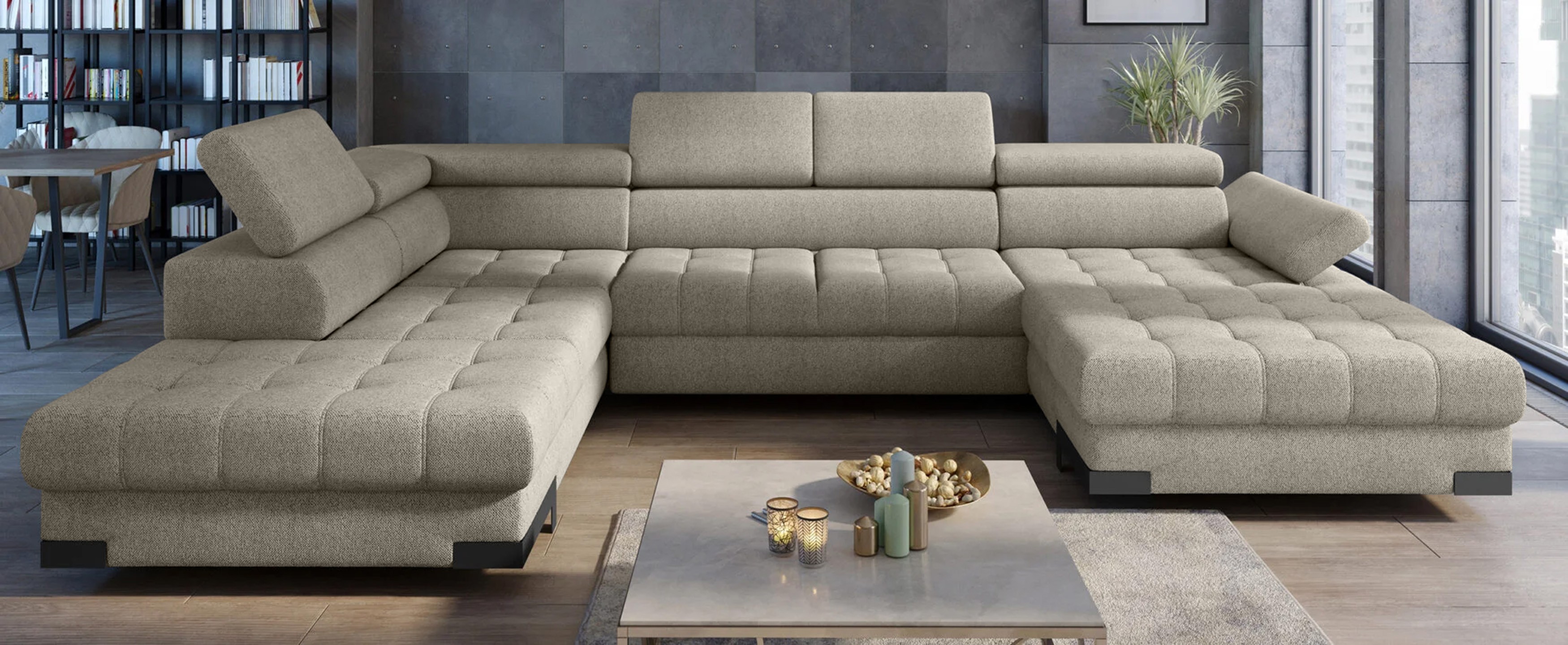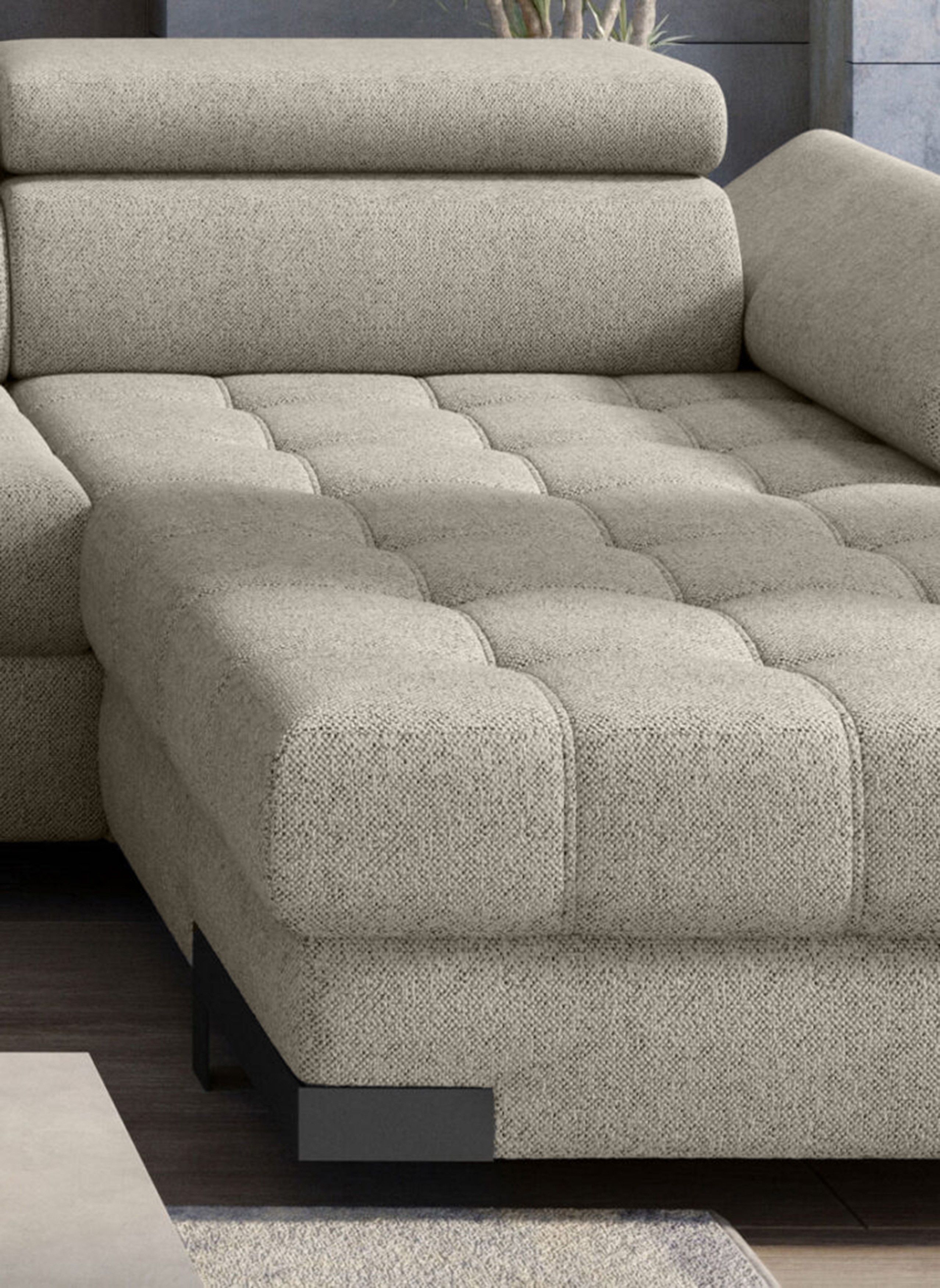 Nowoczesny narożnik SELVA XL łączy minimalistyczny design z wysoką funkcjonalnością, oferując wyjątkowy komfort codziennego użytkowania.