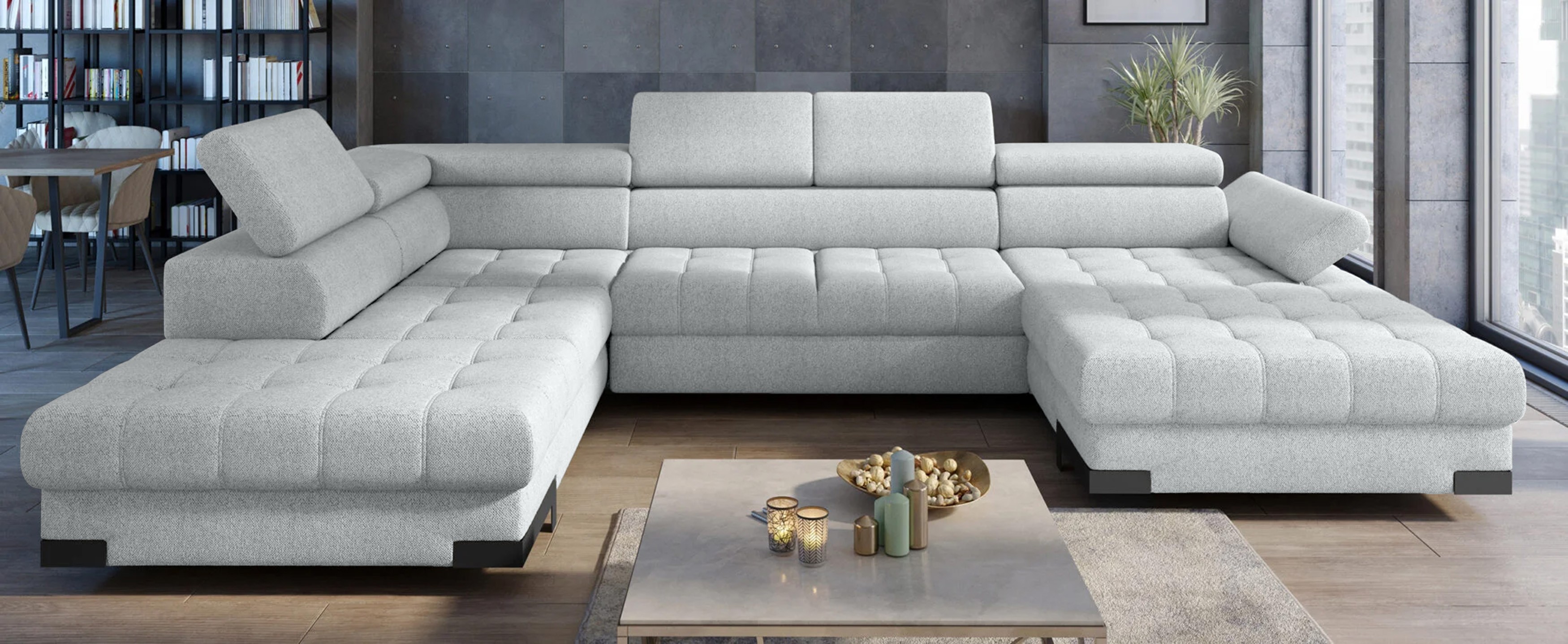 Nowoczesny narożnik SELVA XL łączy minimalistyczny design z wysoką funkcjonalnością, oferując wyjątkowy komfort codziennego użytkowania.