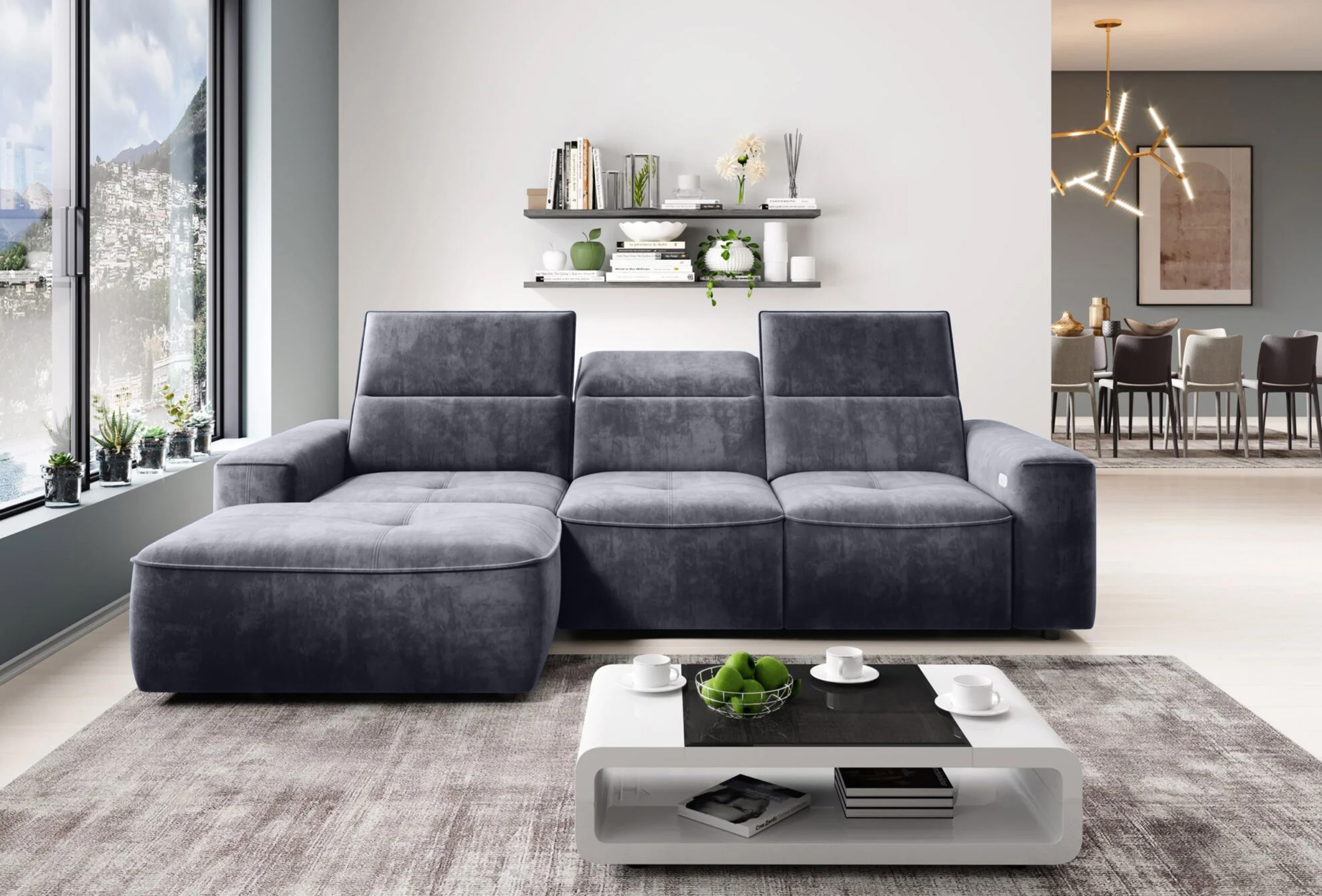 Narożnik COLOMBO L Lewostronny z elektryczną funkcją spania pojemnikiem ELEMENT 01 Grafitowy WERSAL