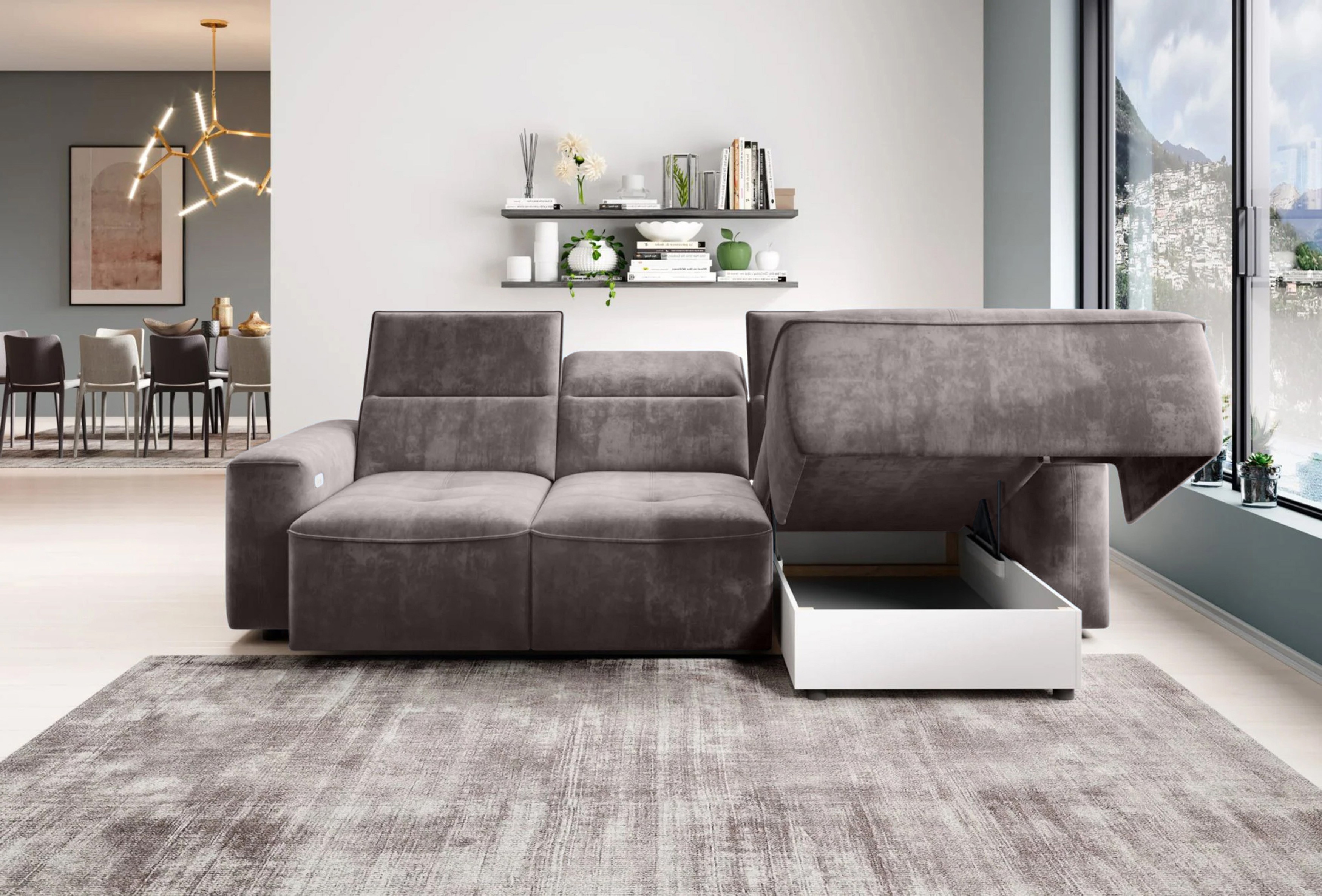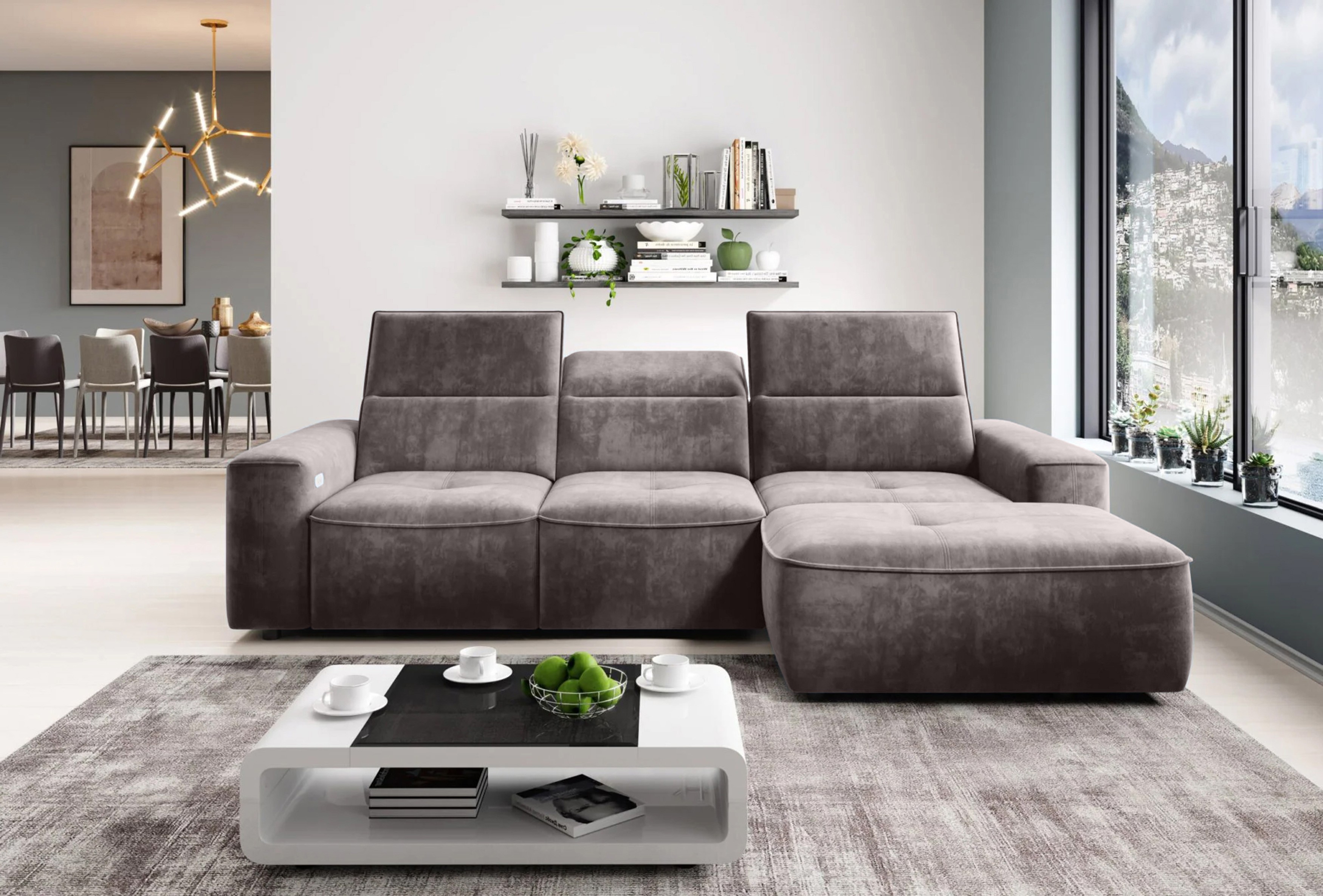 Narożnik COLOMBO L Prawostronny z elektryczną funkcją spania pojemnikiem ELEMENT 04 Popielaty WERSAL