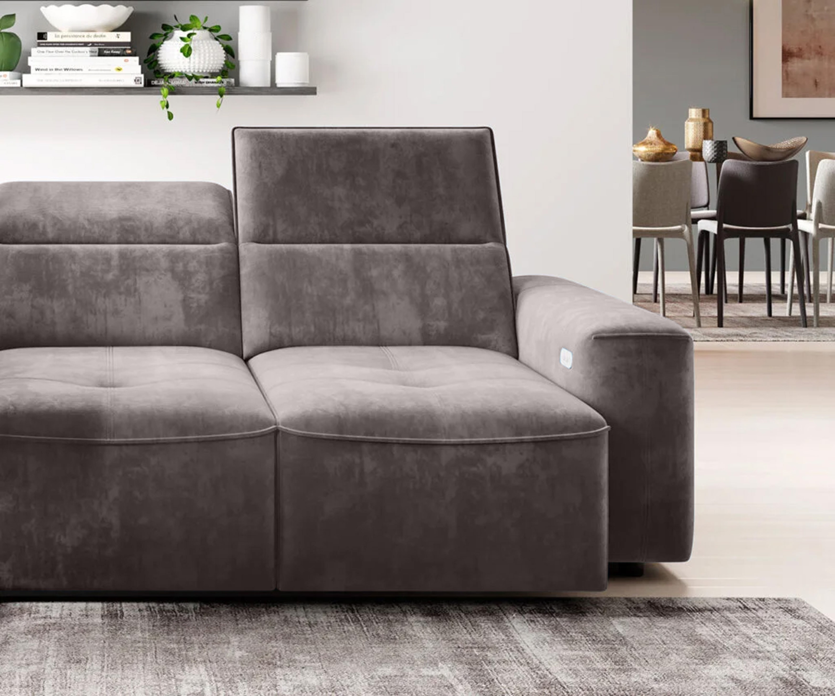 Elektryczna funkcja spania gwarantuje komfort i wygodę każdego dnia, a funkcja RELAX z regulowanymi zagłówkami pozwala dostosować narożnik do indywidualnych potrzeb. Dzięki regulowanej głębokości siedziska odpoczynek staje się jeszcze bardziej komfortowy.