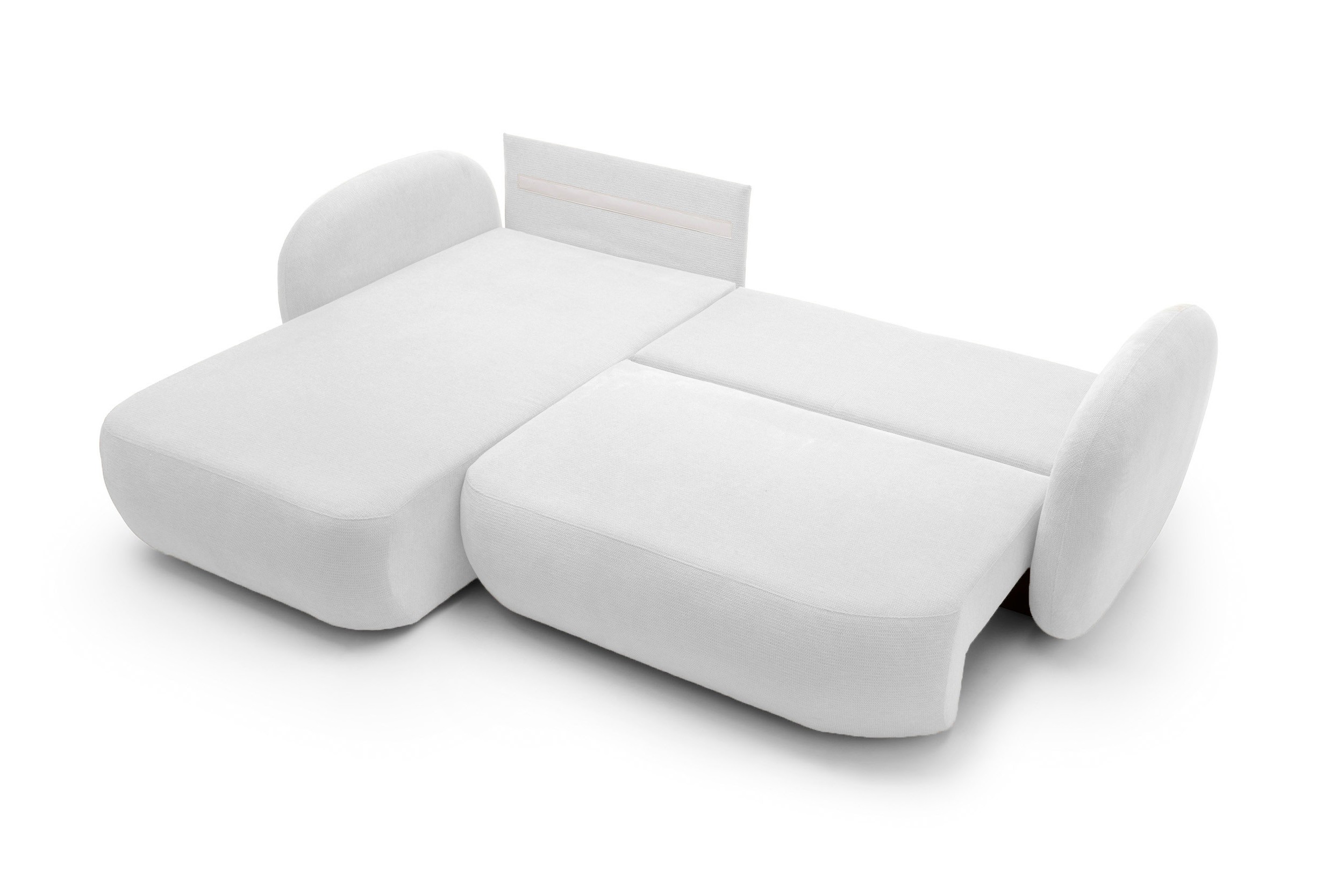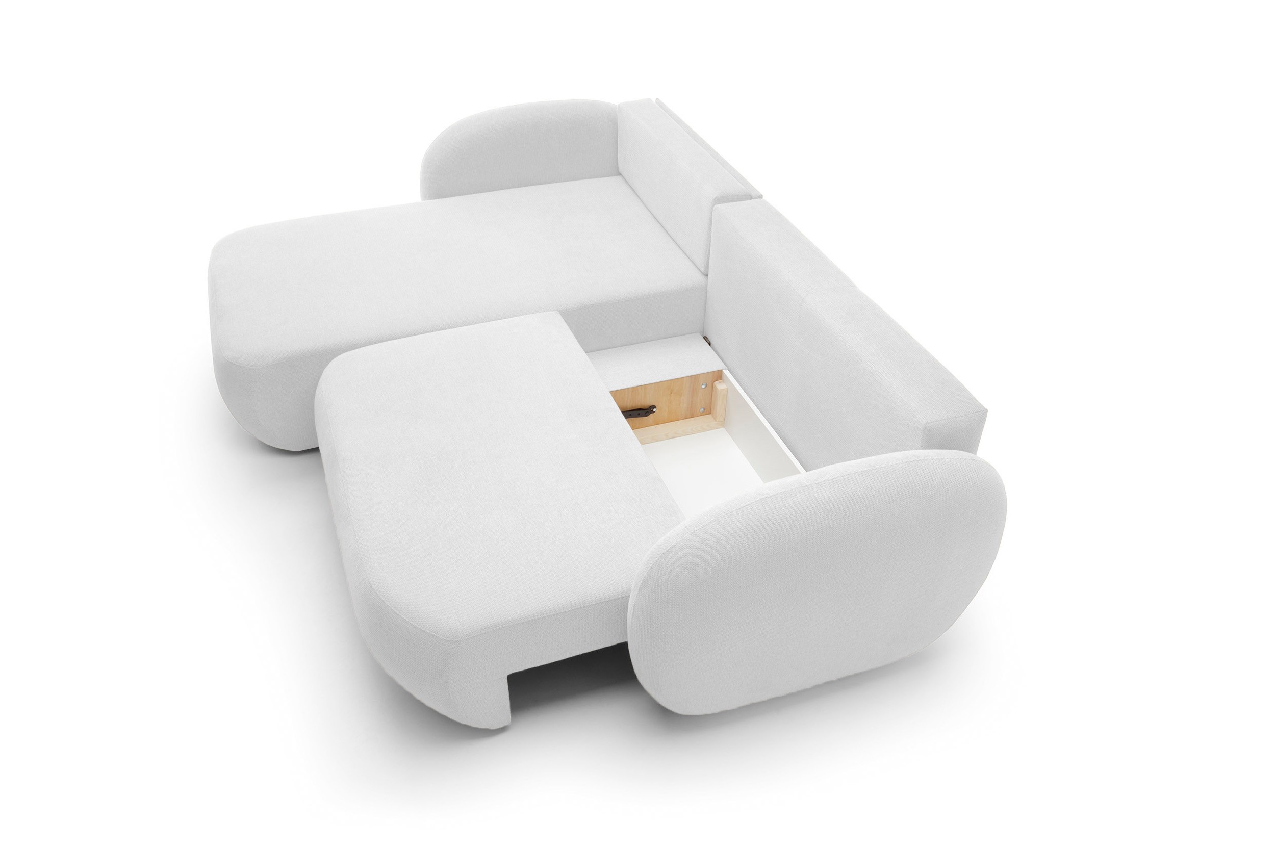 Narożnik OLIO to elegancki i funkcjonalny mebel, idealny do nowoczesnych wnętrz. Wyposażony w praktyczny pojemnik na pościel, ułatwia przechowywanie i utrzymanie porządku.