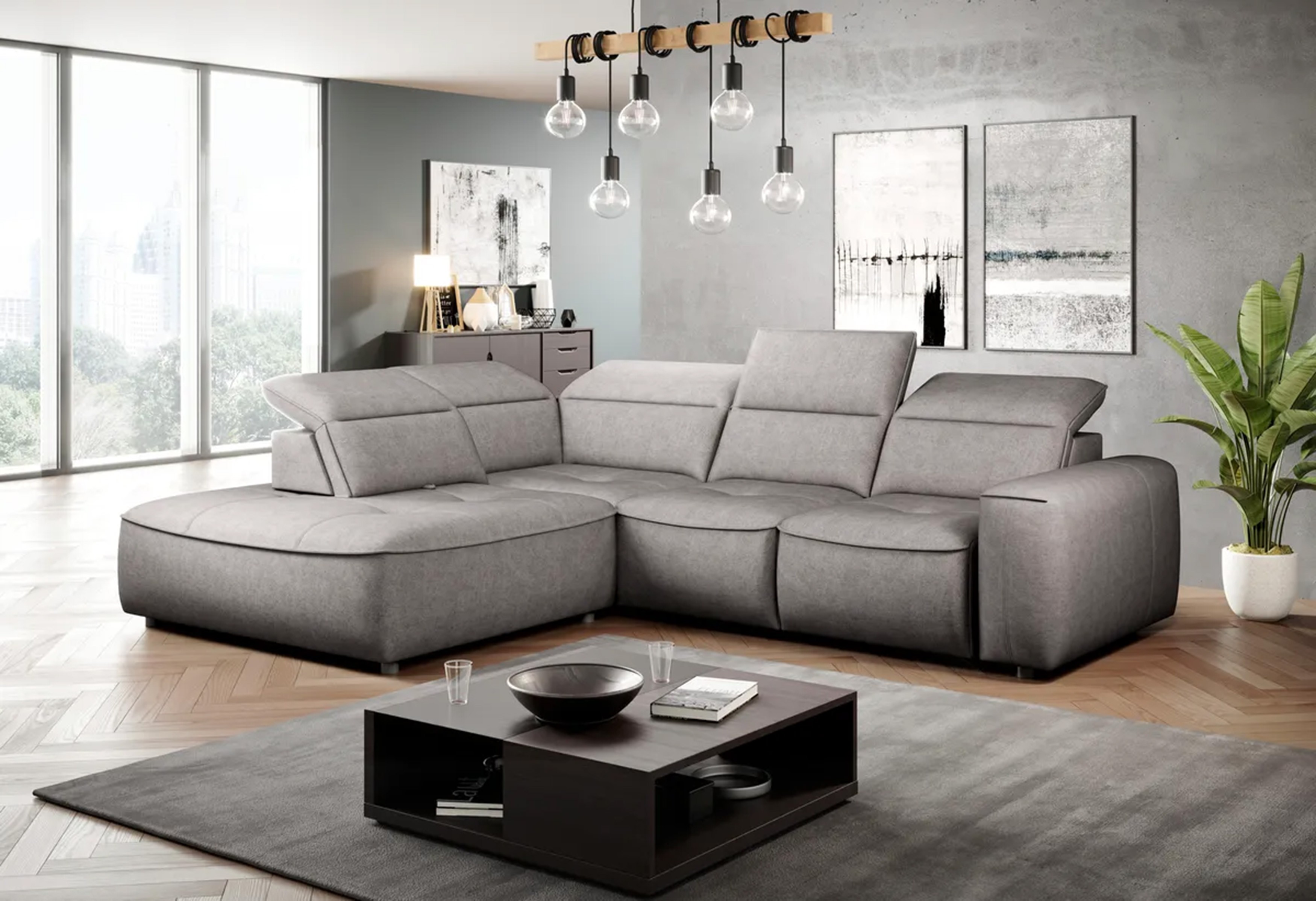Narożnik COLOMBO L Lewostronny z elektryczną funkcją spania pojemnikiem ELEMENT 04 Popielaty WERSAL