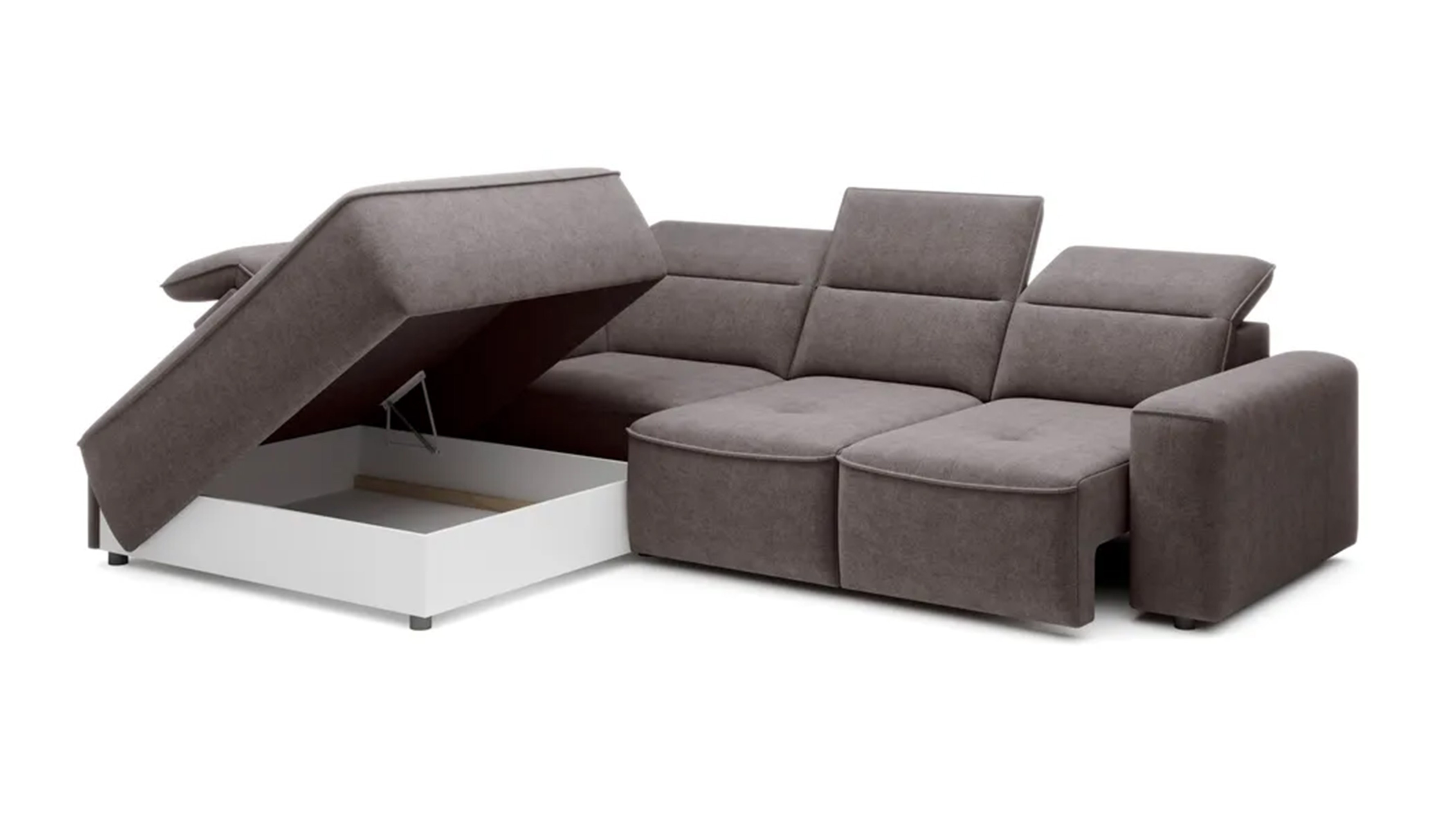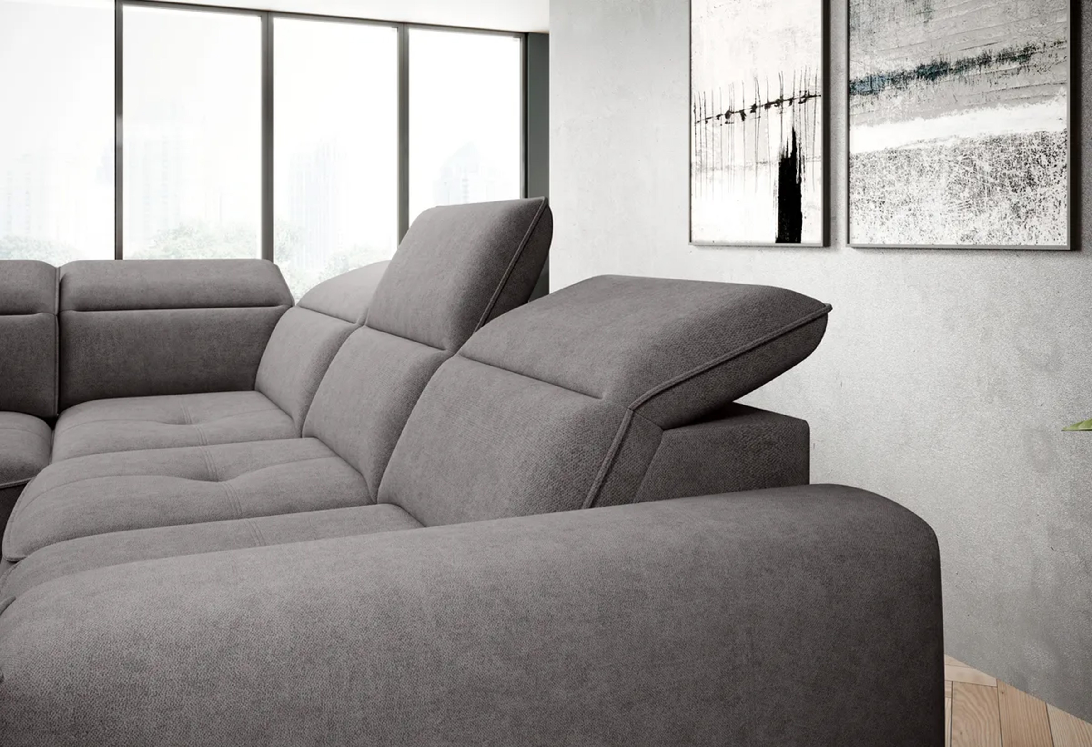 Elektryczna funkcja spania gwarantuje komfort i wygodę każdego dnia, a funkcja RELAX z regulowanymi zagłówkami pozwala dostosować narożnik do indywidualnych potrzeb. Dzięki regulowanej głębokości siedziska odpoczynek staje się jeszcze bardziej komfortowy.