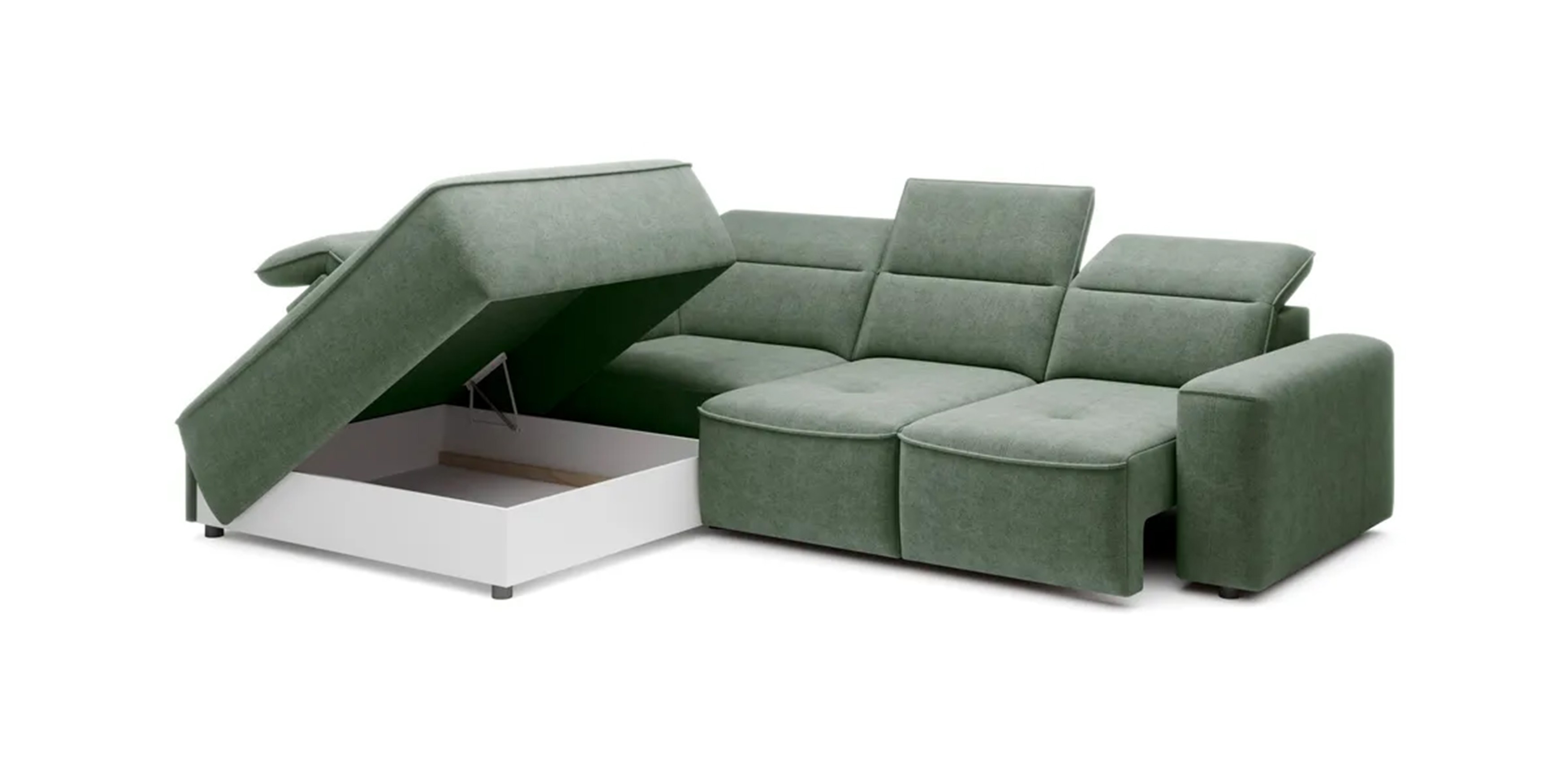 Narożnik COLOMBO L Lewostronny z elektryczną funkcją spania pojemnikiem ELEMENT 11 Zielony WERSAL