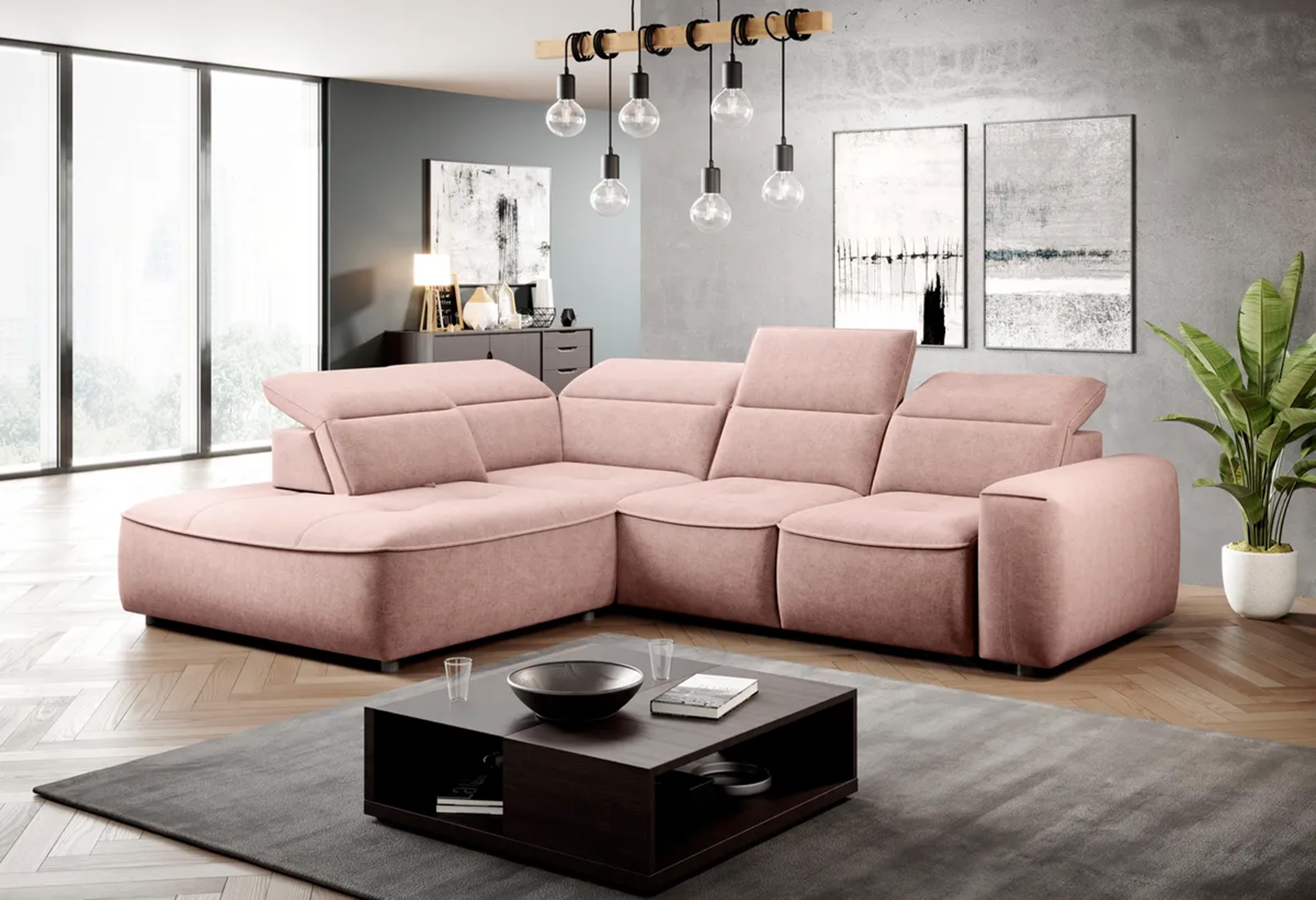 Narożnik COLOMBO L Lewostronny z elektryczną funkcją spania pojemnikiem ELEMENT 18 Różowy WERSAL