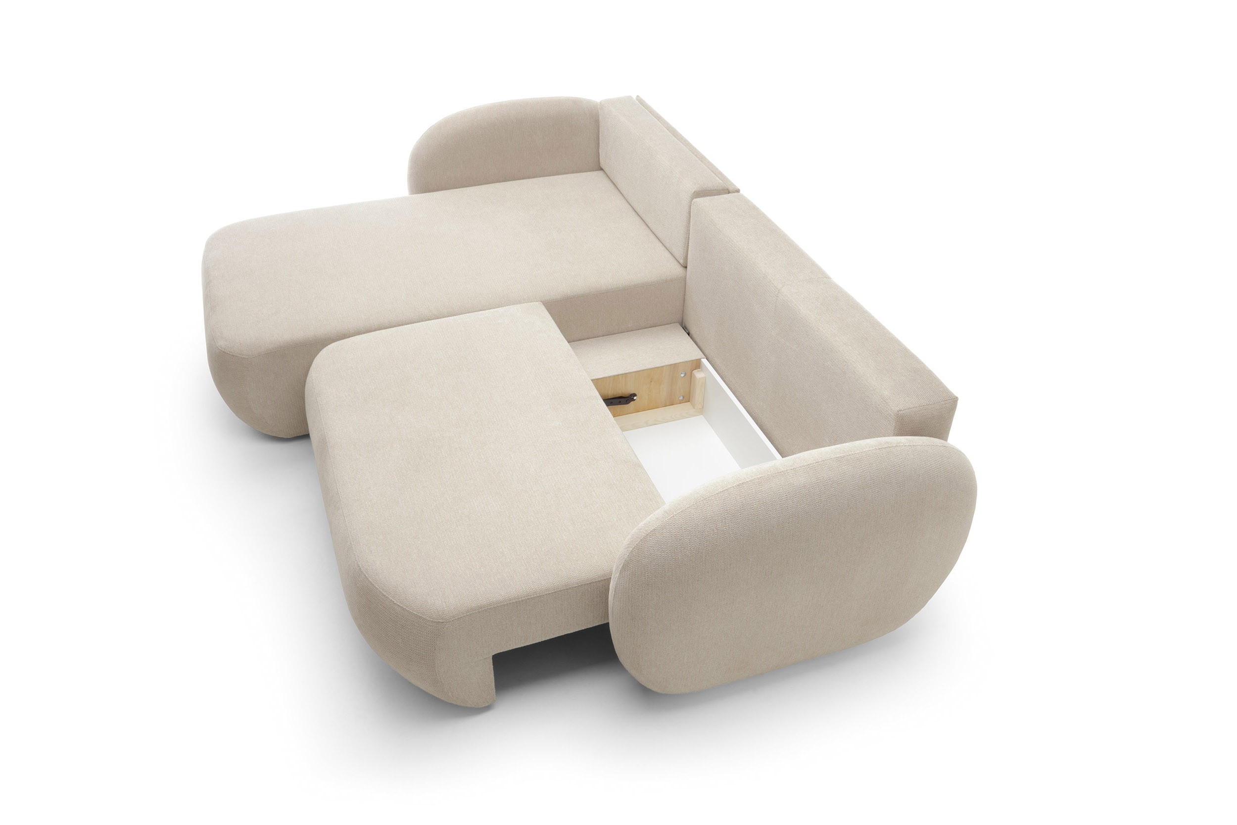 a miła dla ciała tkanina umila relaks. Zaoblony mebel jest bezpieczniejszy w obecności dzieci – zaokrąglone krawędzie są miękkie i subtelne, nie stwarzają zagrożenia.