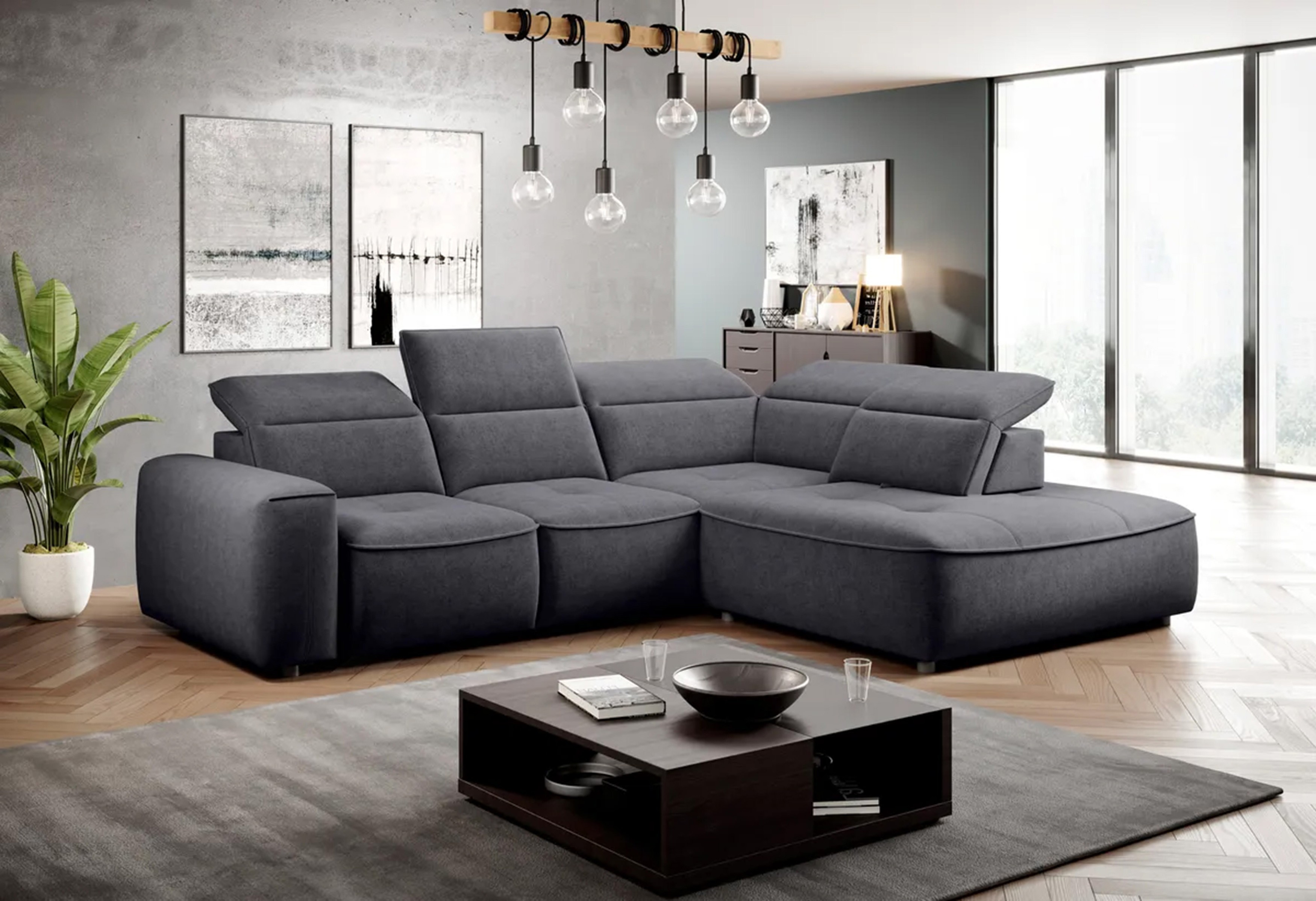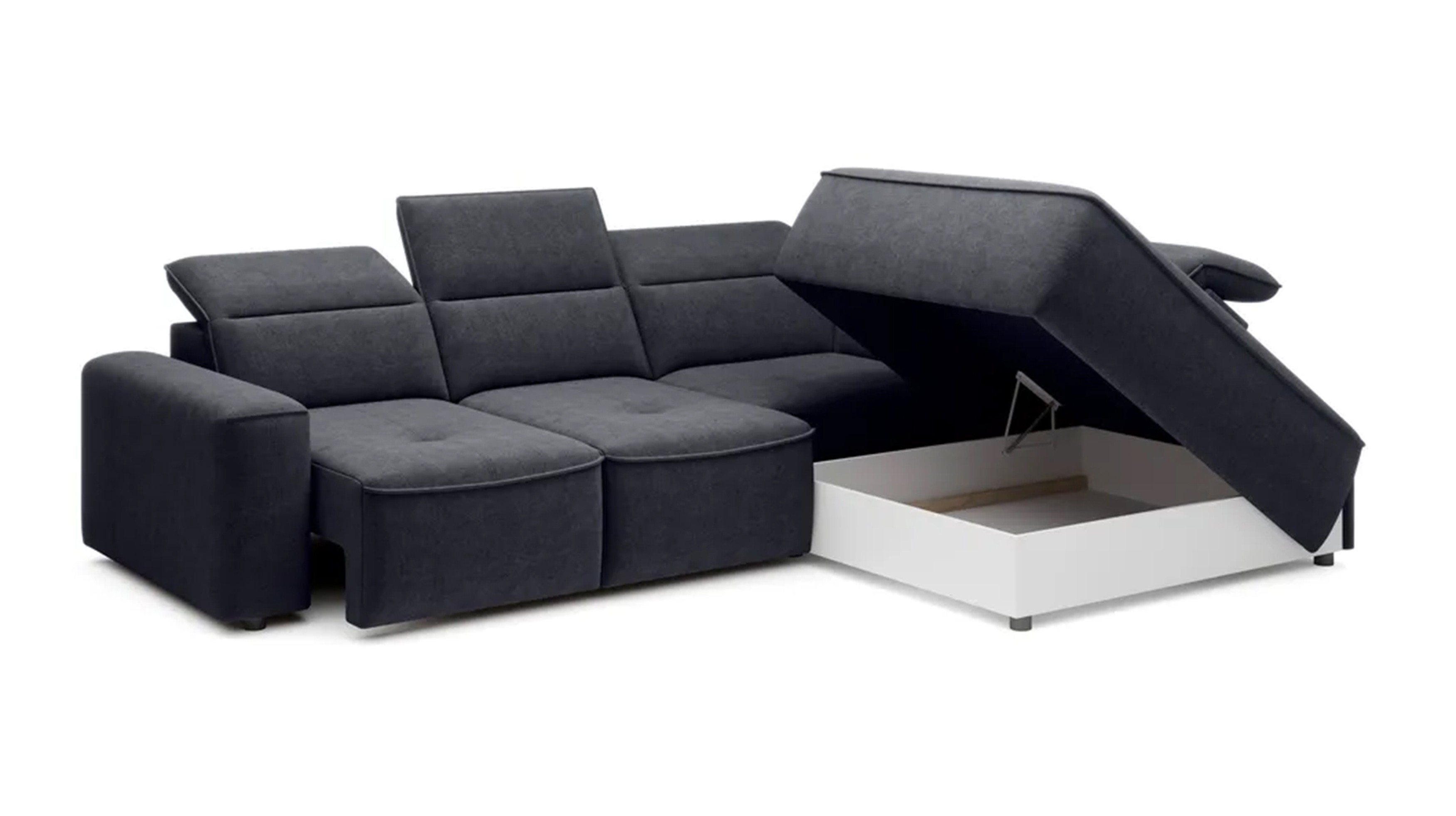 Elektryczna funkcja spania gwarantuje komfort i wygodę każdego dnia, a funkcja RELAX z regulowanymi zagłówkami pozwala dostosować narożnik do indywidualnych potrzeb. Dzięki regulowanej głębokości siedziska odpoczynek staje się jeszcze bardziej komfortowy.