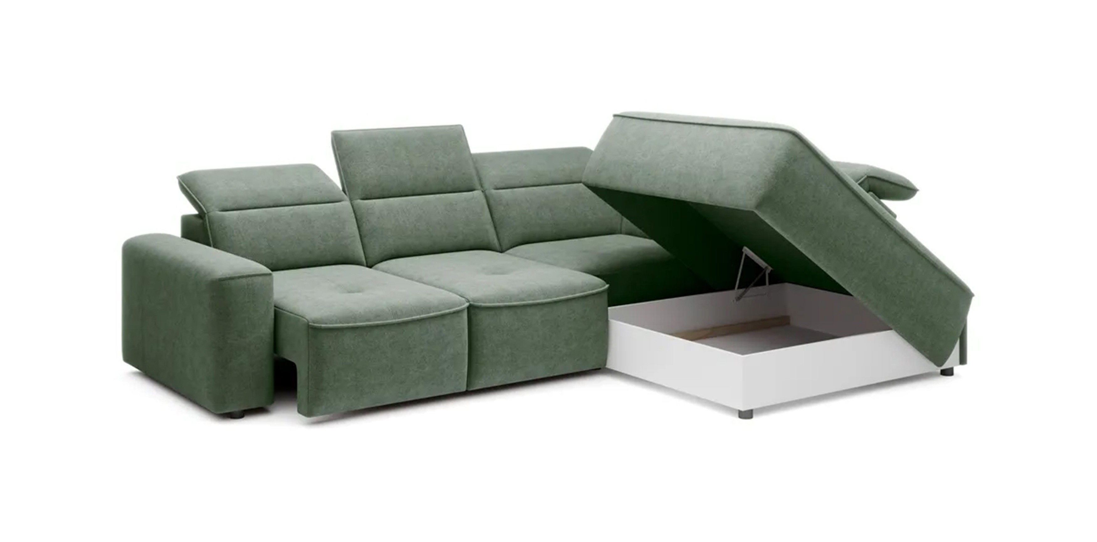 Narożnik COLOMBO L Prawostronny z elektryczną funkcją spania pojemnikiem ELEMENT 11 Zielony WERSAL
