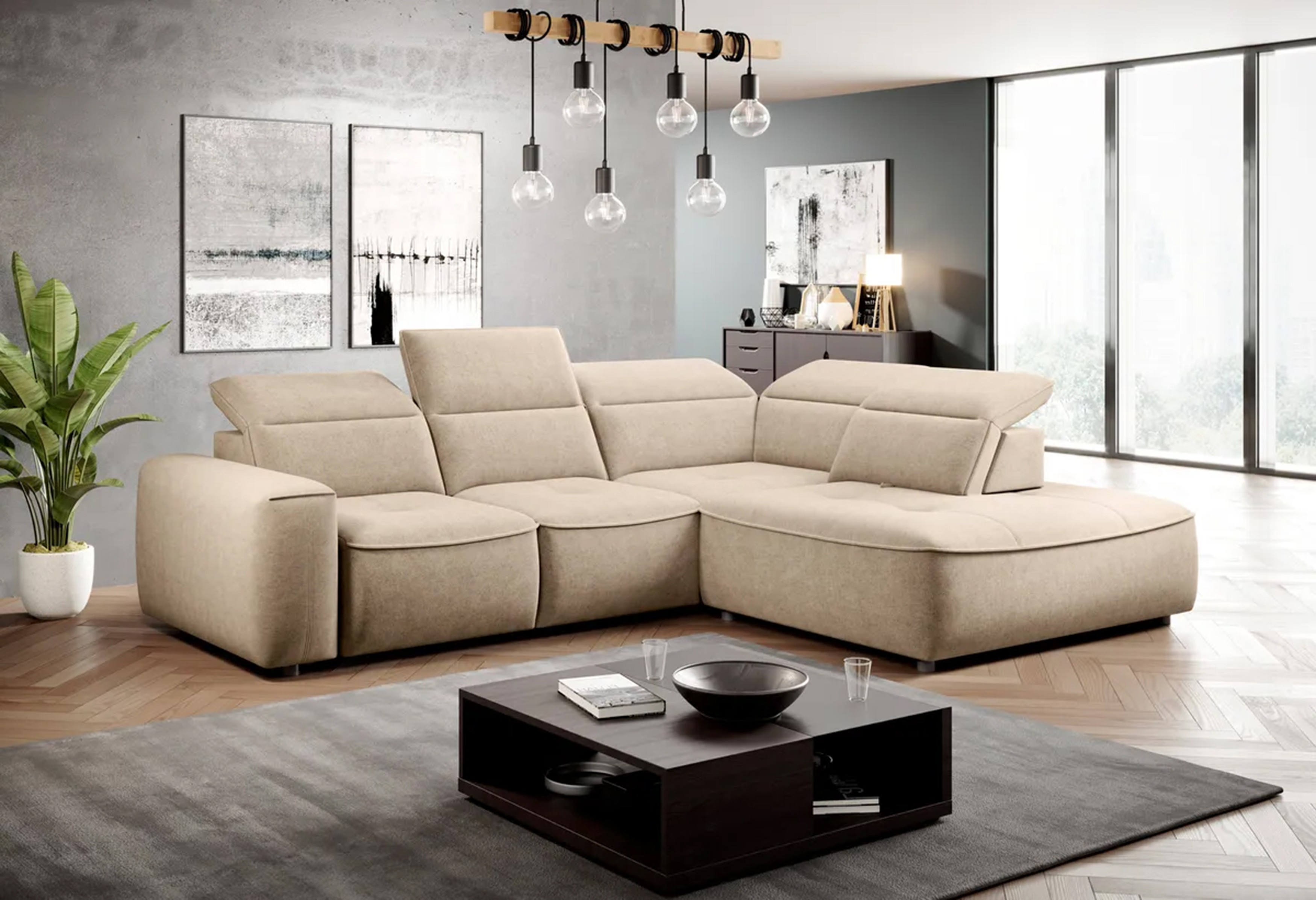 Narożnik COLOMBO XL Prawostronny z elektryczną funkcją spania pojemnikiem PALLADIUM 02 Beżowy WERSAL