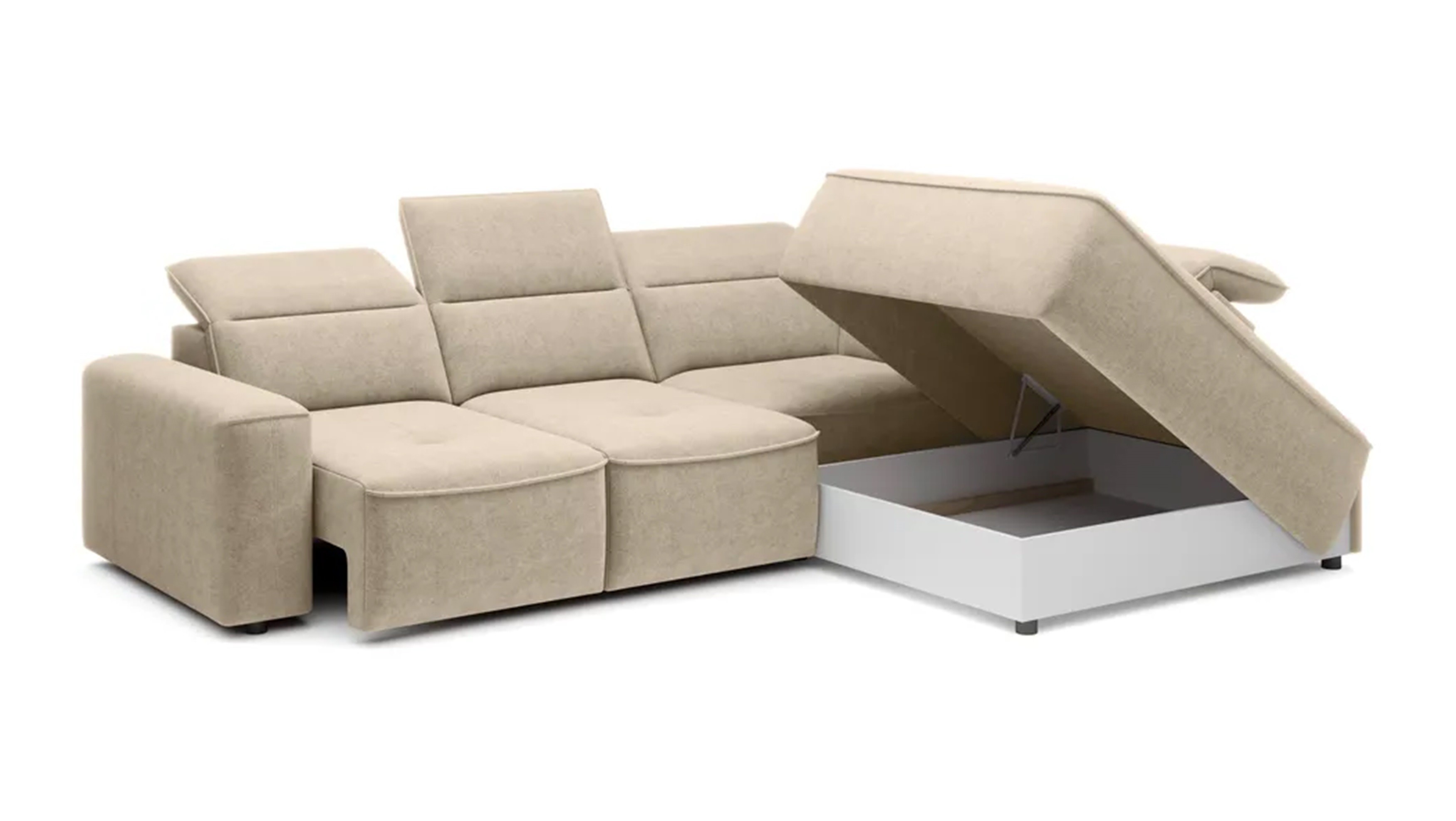 Elektryczna funkcja spania gwarantuje komfort i wygodę każdego dnia, a funkcja RELAX z regulowanymi zagłówkami pozwala dostosować narożnik do indywidualnych potrzeb. Dzięki regulowanej głębokości siedziska odpoczynek staje się jeszcze bardziej komfortowy.