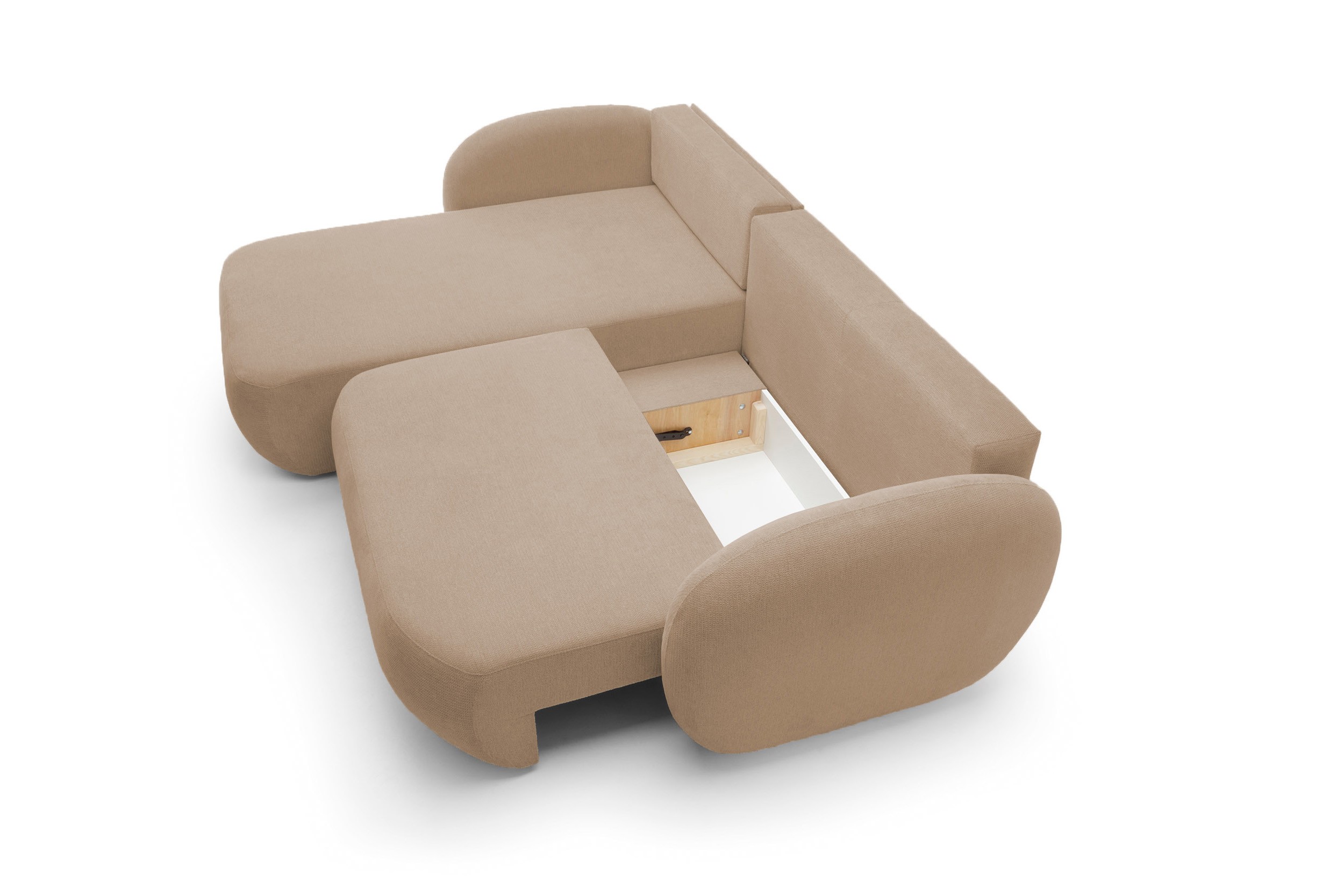 a miła dla ciała tkanina umila relaks. Zaoblony mebel jest bezpieczniejszy w obecności dzieci – zaokrąglone krawędzie są miękkie i subtelne, nie stwarzają zagrożenia.