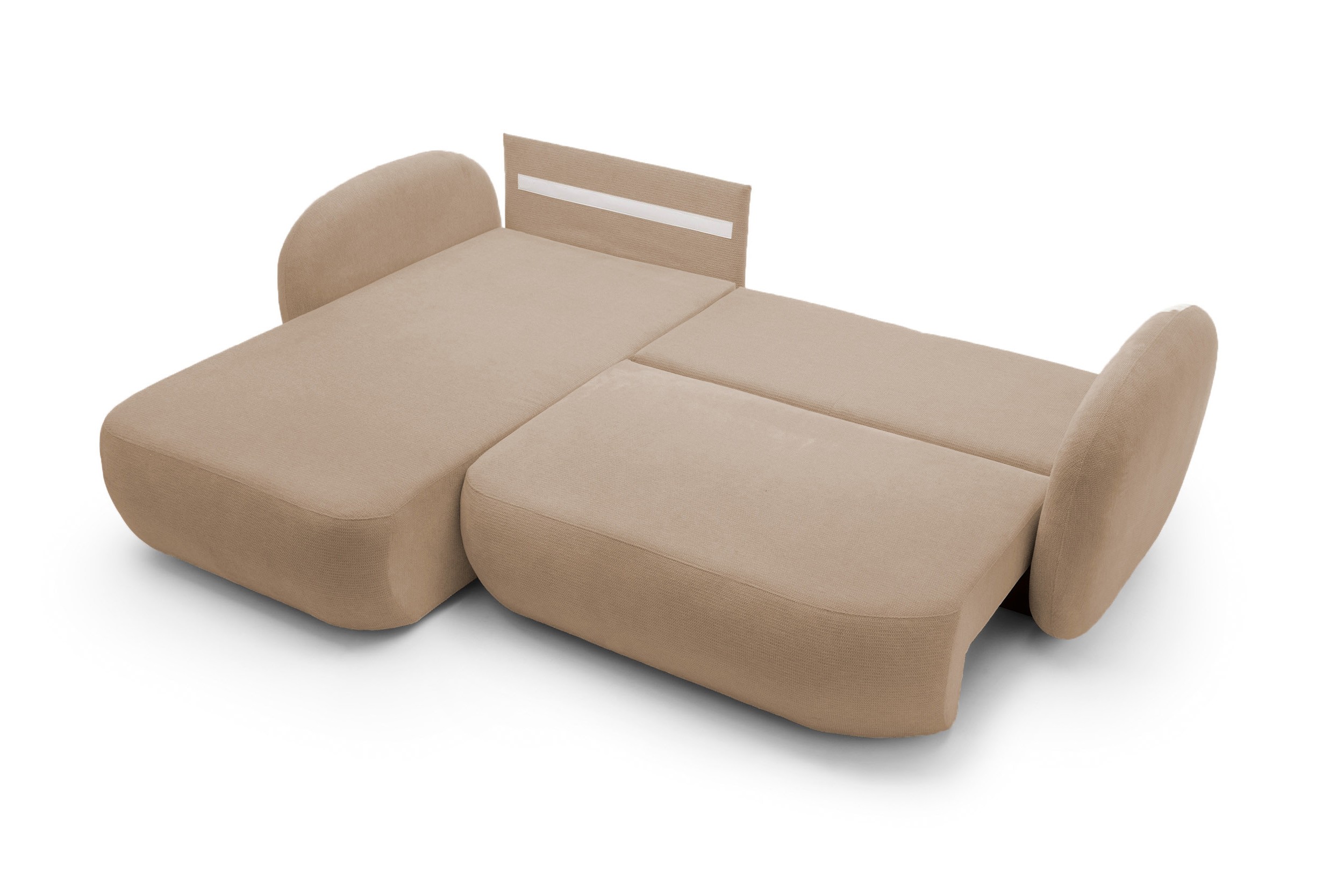 Powierzchnia spania 138×210 cm przypomina pełnowymiarowe łóżko, a wypełnienie z pianki PUR i sprężyn bonellowych w odrębnych kieszeniach zapewnia optymalną sprężystość i miękkość.