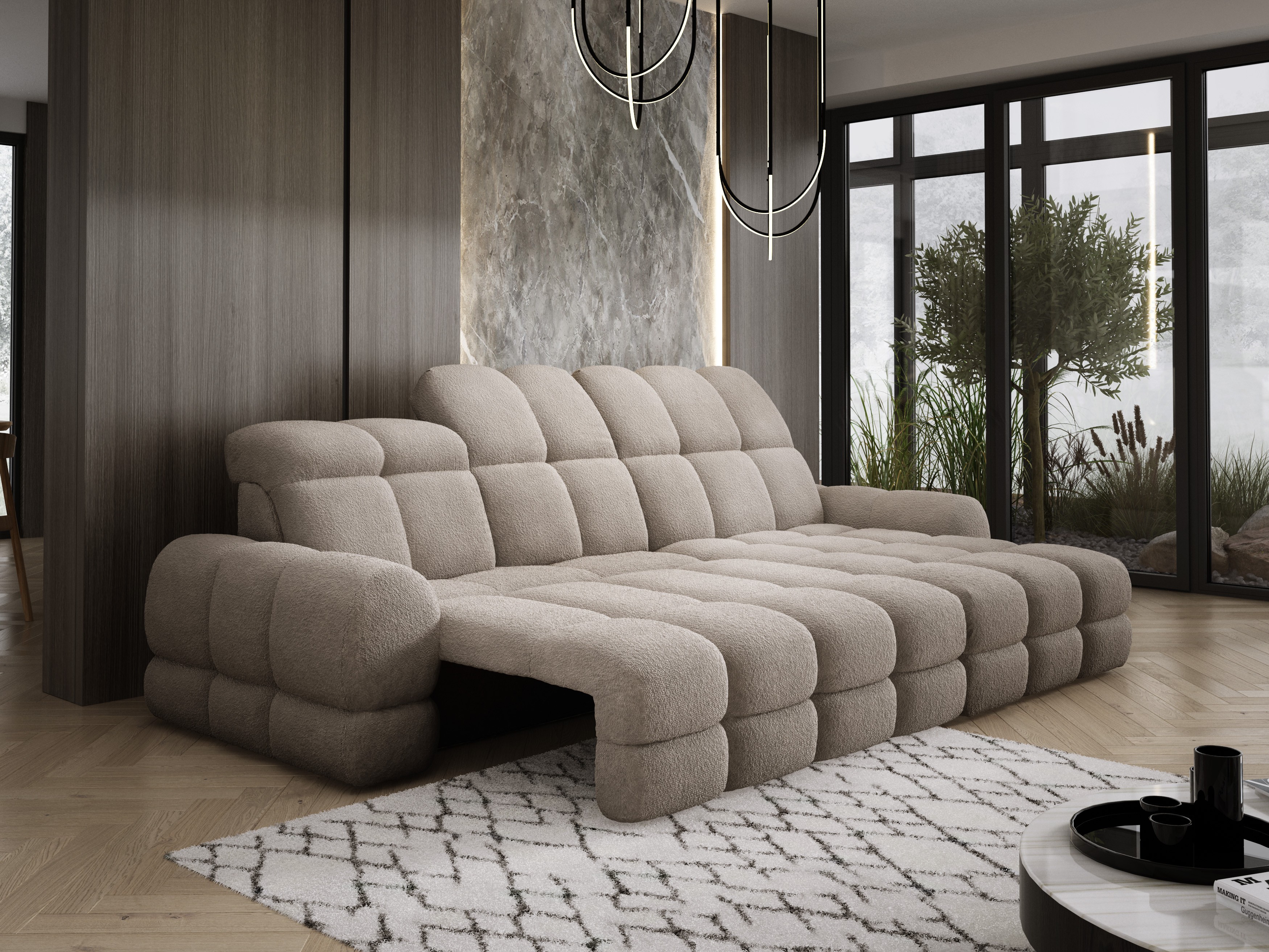 Model został wyposażony w elektrycznie rozkładaną funkcję spania, która w kilka chwil zamienia narożnik w komfortowe łóżko – idealne do codziennego relaksu lub dla gości.