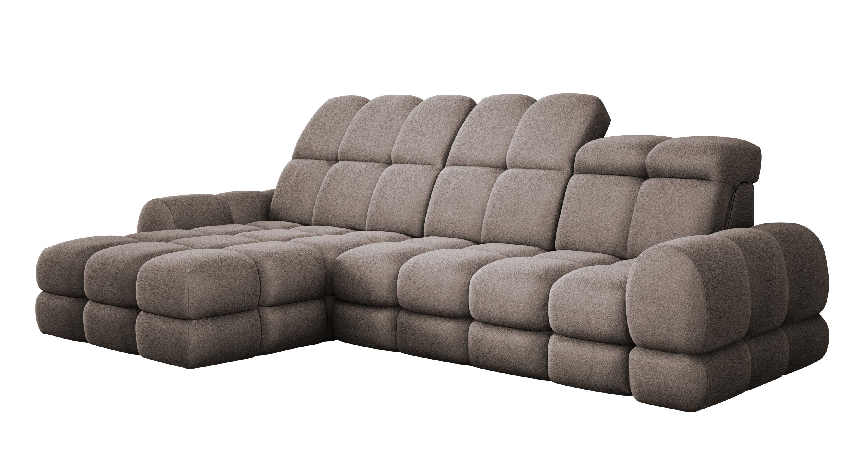 Model został wyposażony w elektrycznie rozkładaną funkcję spania, która w kilka chwil zamienia narożnik w komfortowe łóżko – idealne do codziennego relaksu lub dla gości.