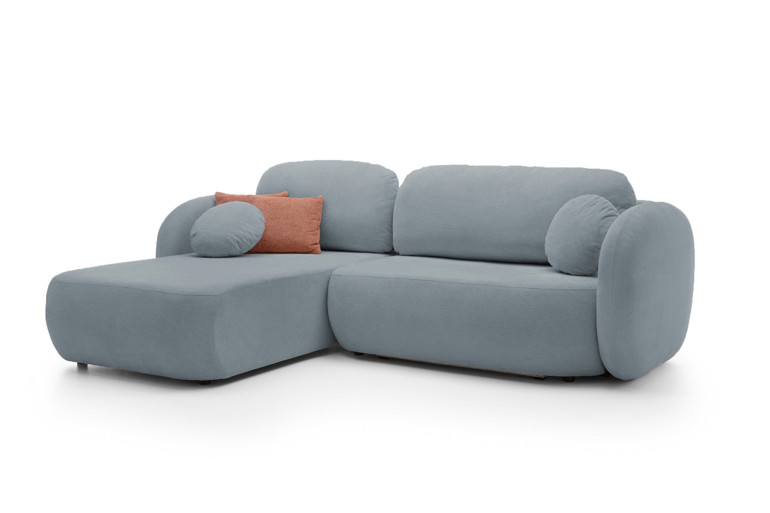Prześliczny, mięciutki narożnik OLIO to idealny wybór na udany wypoczynek. Jego przytulne, zaokrąglone kształty sprawiają, że prezentuje się miękko i niezwykle wygodnie, a miła dla ciała tkanina umila codzienny relaks. Obła forma narożnika zwiększa bezpieczeństwo w obecności dzieci – zaokrąglone krawędzie są miękkie i subtelne, nie stwarzając zagrożenia.