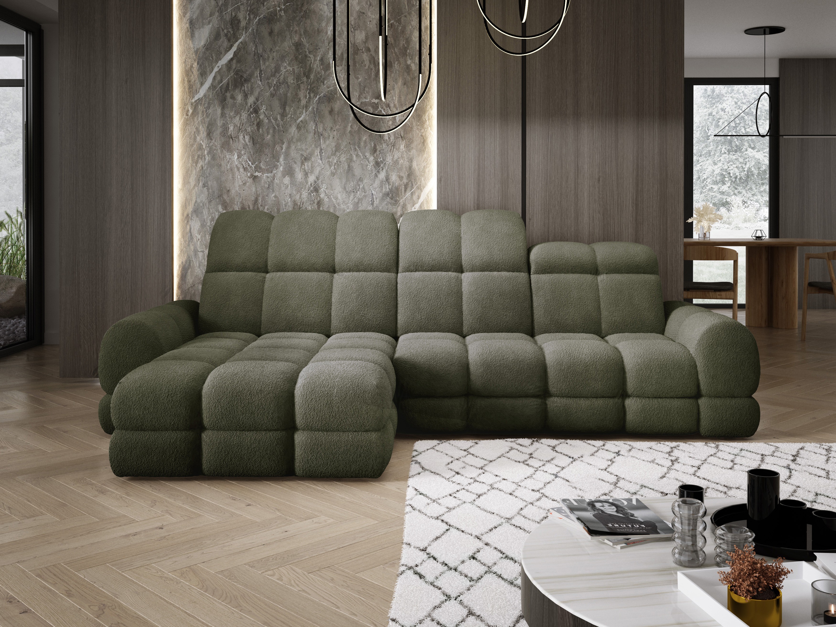 Model został wyposażony w elektrycznie rozkładaną funkcję spania, która w kilka chwil zamienia narożnik w komfortowe łóżko – idealne do codziennego relaksu lub dla gości.