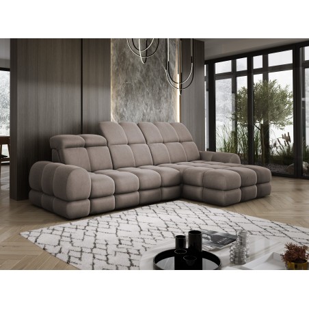 Model został wyposażony w elektrycznie rozkładaną funkcję spania, która w kilka chwil zamienia narożnik w komfortowe łóżko – idealne do codziennego relaksu lub dla gości.