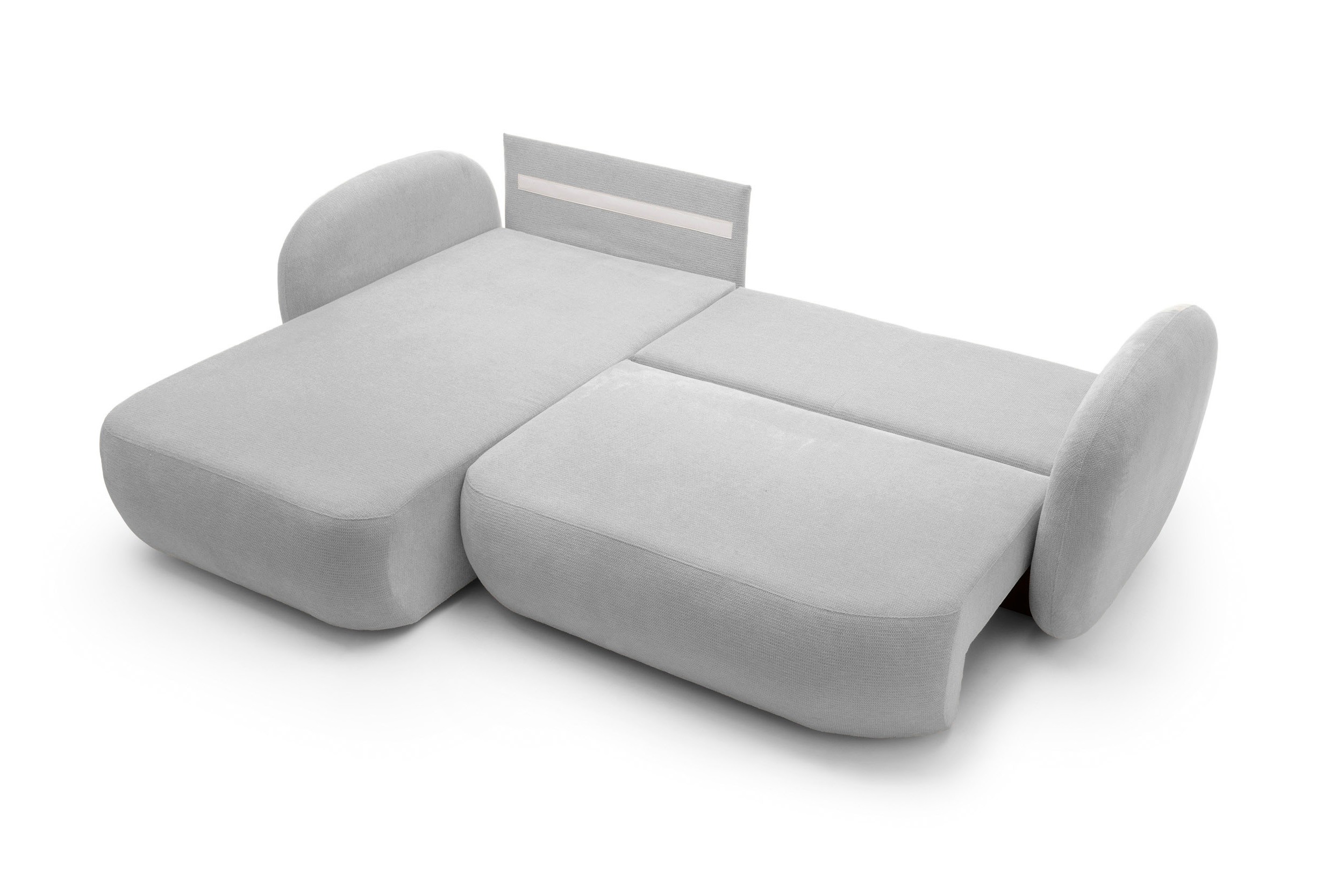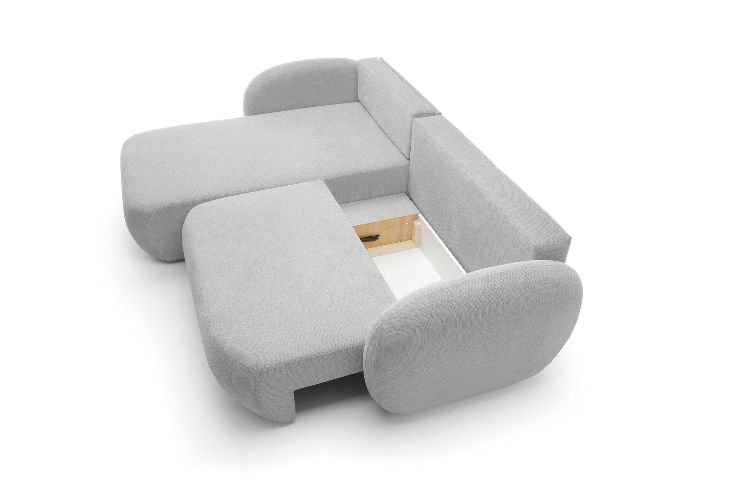 Narożnik OLIO to elegancki i funkcjonalny mebel, idealny do nowoczesnych wnętrz. Wyposażony w pojemnik na pościel, który ułatwia przechowywanie i organizację.