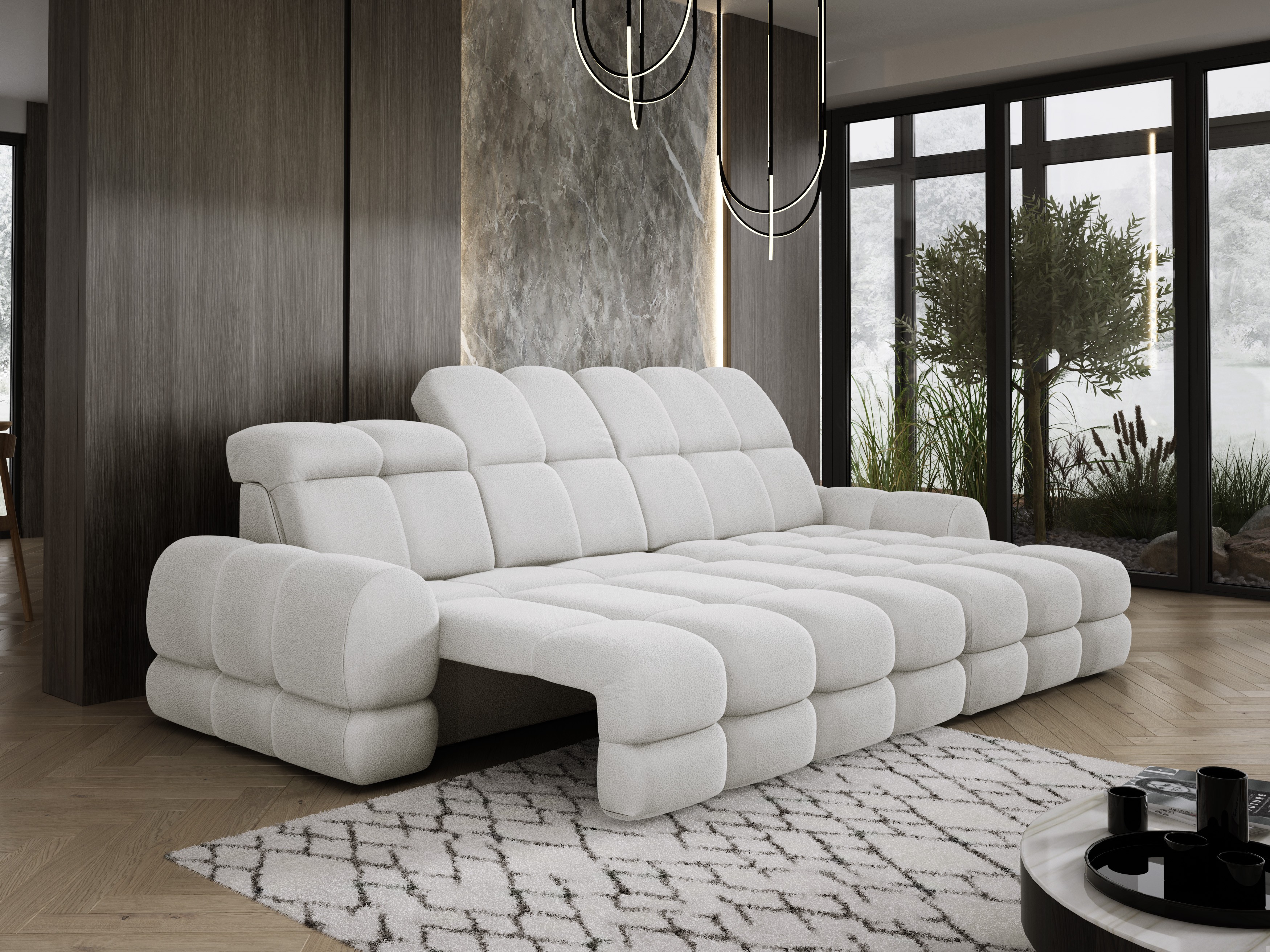Model został wyposażony w elektrycznie rozkładaną funkcję spania, która w kilka chwil zamienia narożnik w komfortowe łóżko – idealne do codziennego relaksu lub dla gości.
