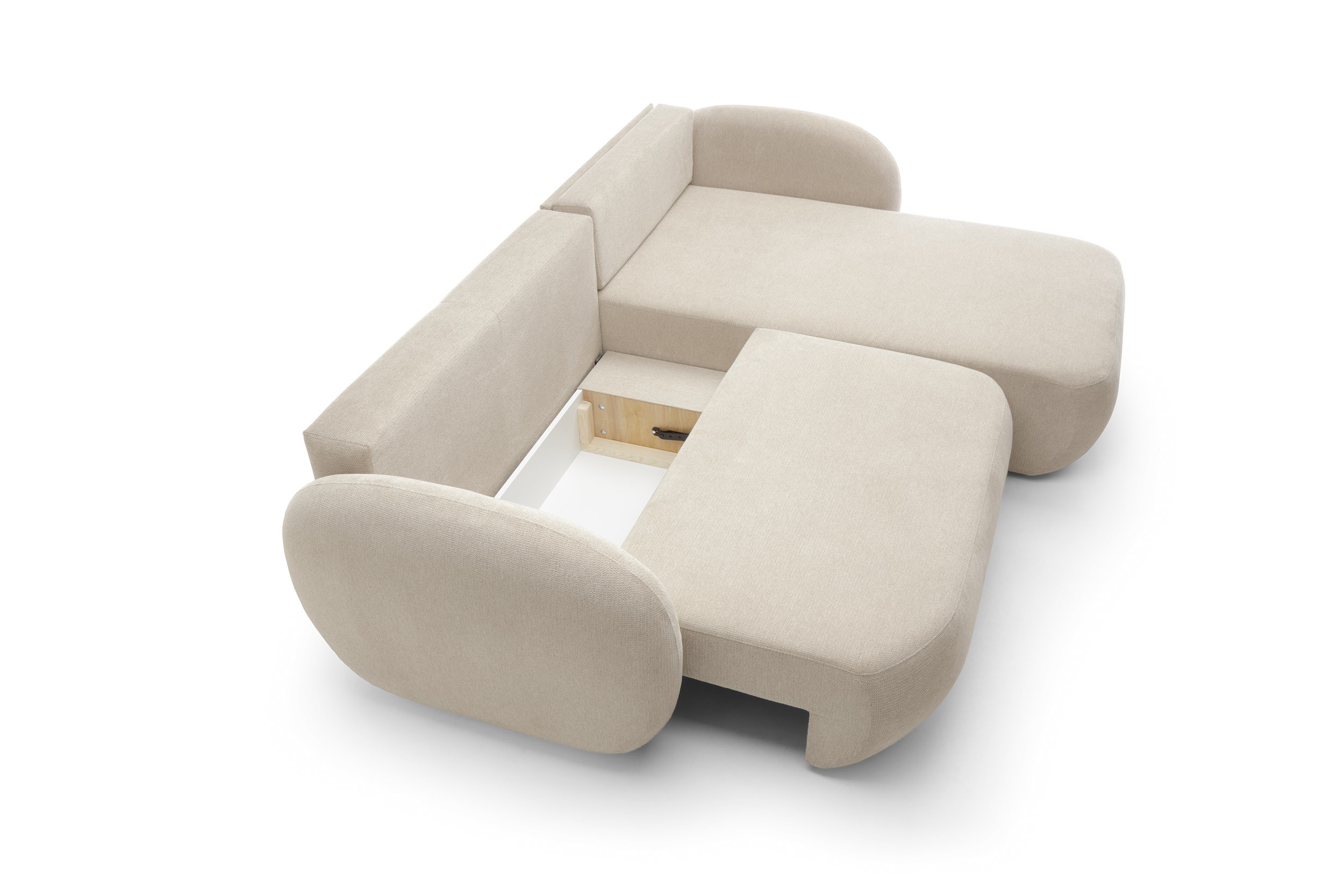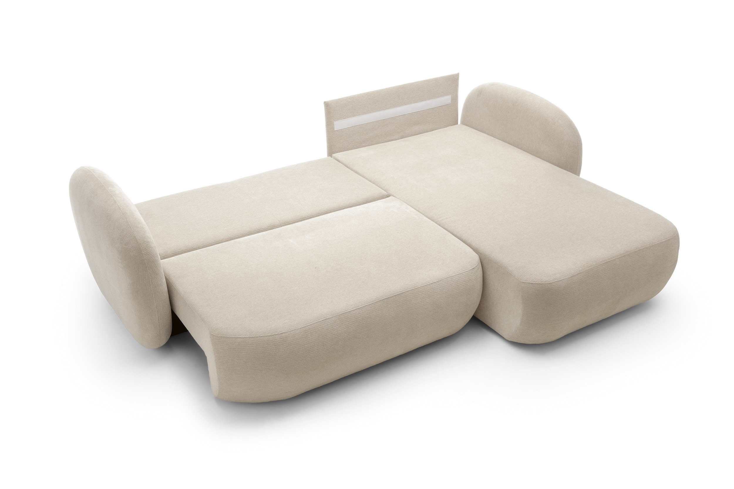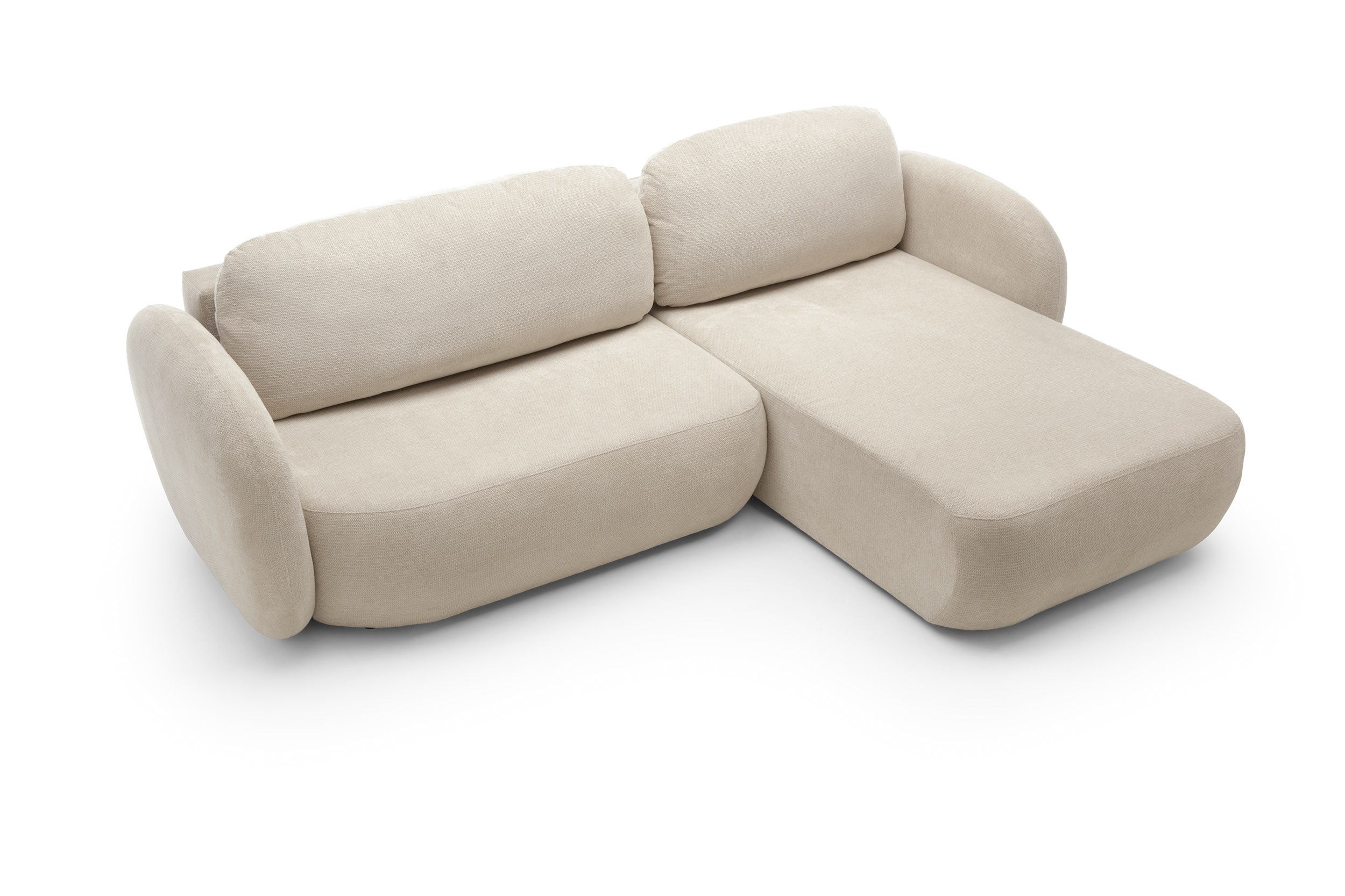a miła dla ciała tkanina umila relaks. Zaoblony mebel jest bezpieczniejszy w obecności dzieci – zaokrąglone krawędzie są miękkie i subtelne, nie stwarzają zagrożenia.