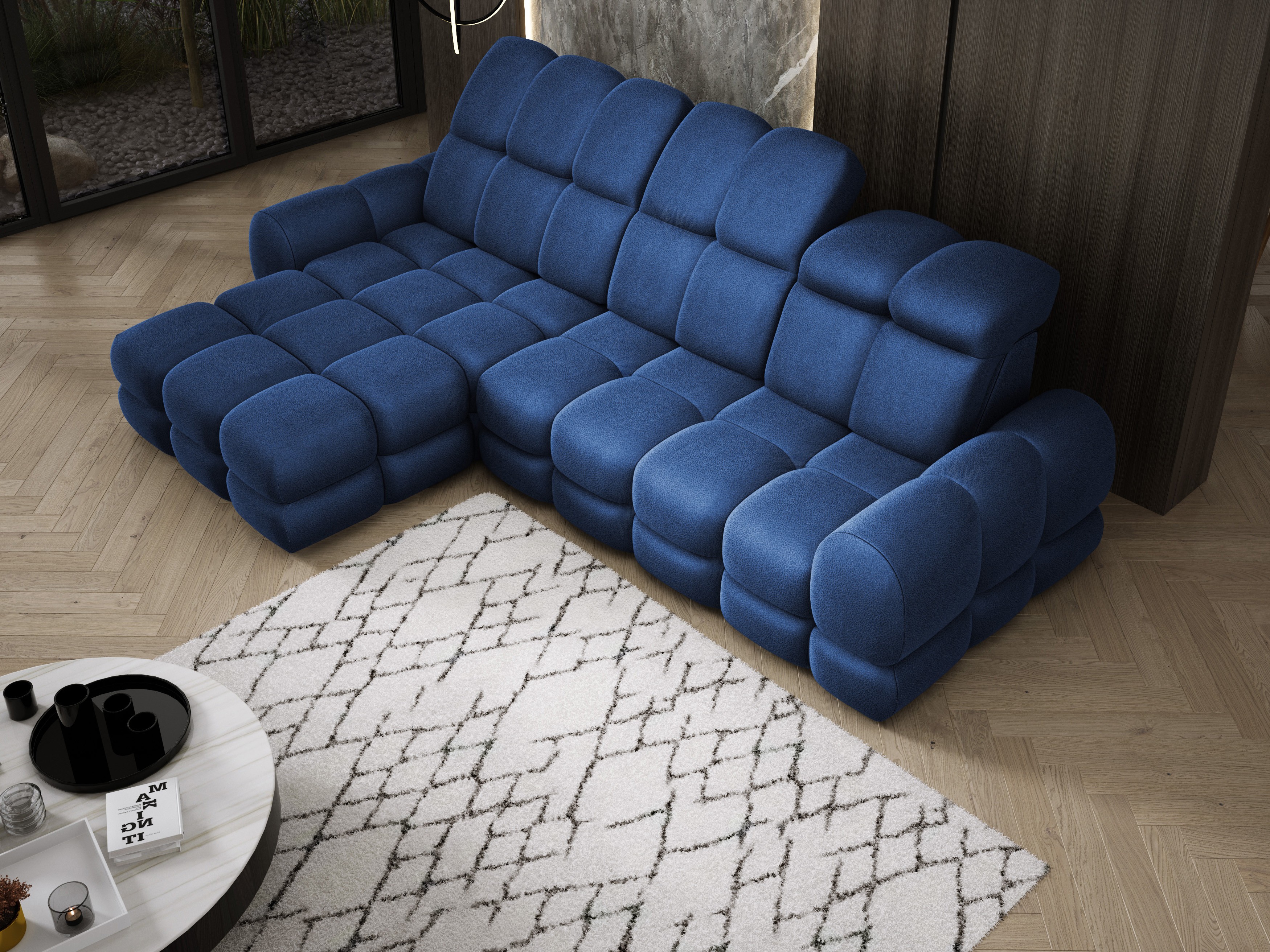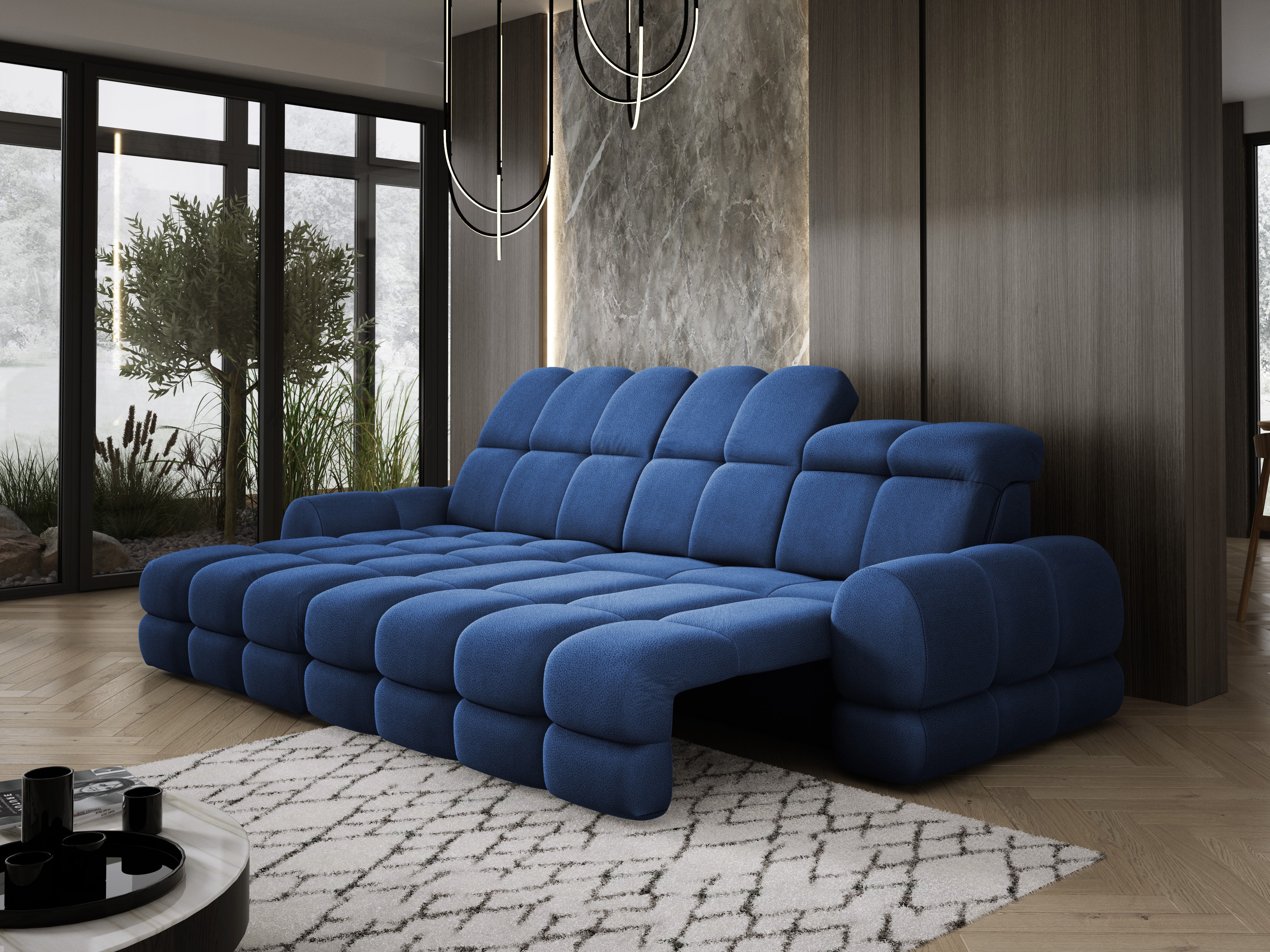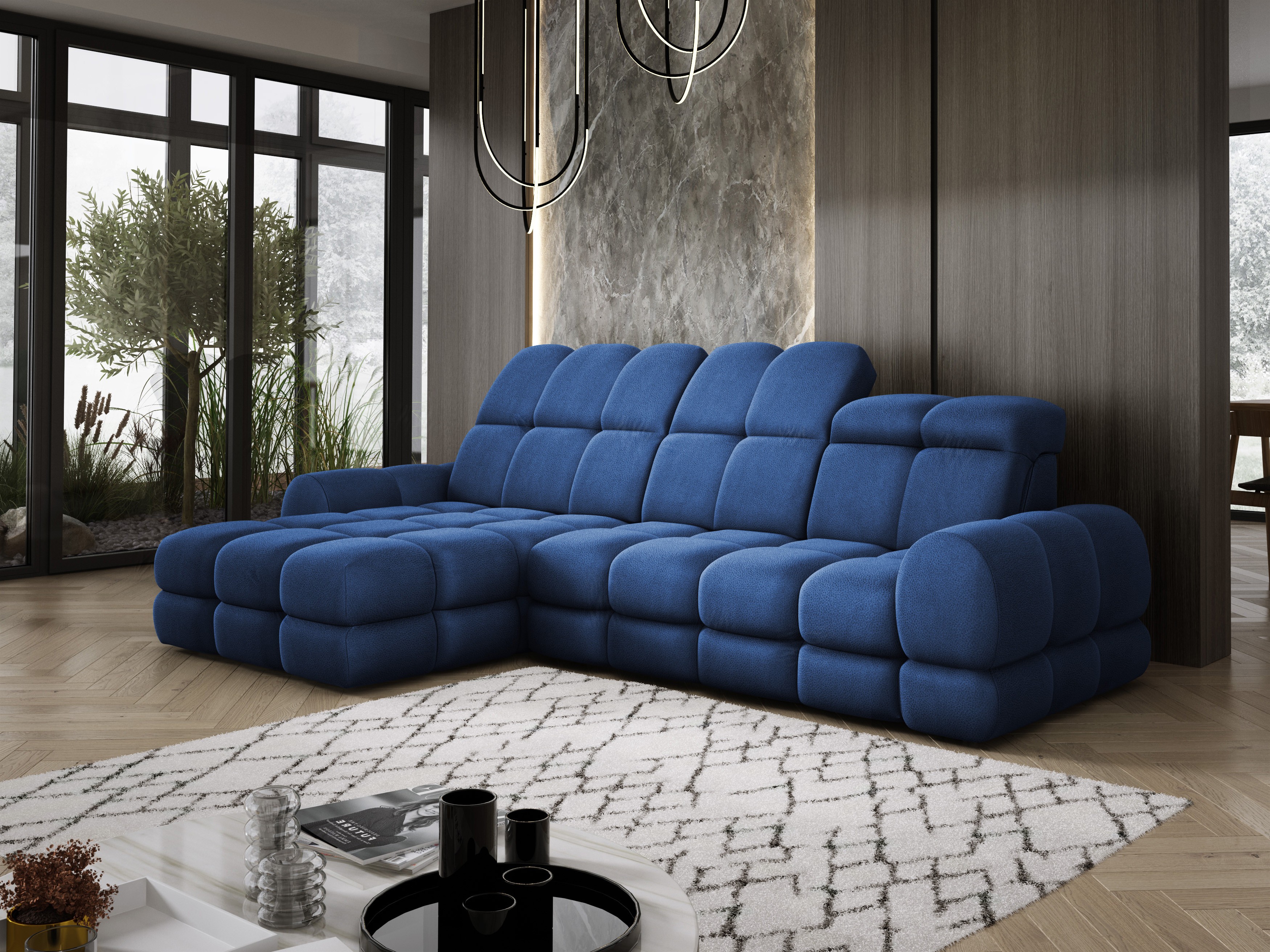 Model został wyposażony w elektrycznie rozkładaną funkcję spania, która w kilka chwil zamienia narożnik w komfortowe łóżko – idealne do codziennego relaksu lub dla gości.