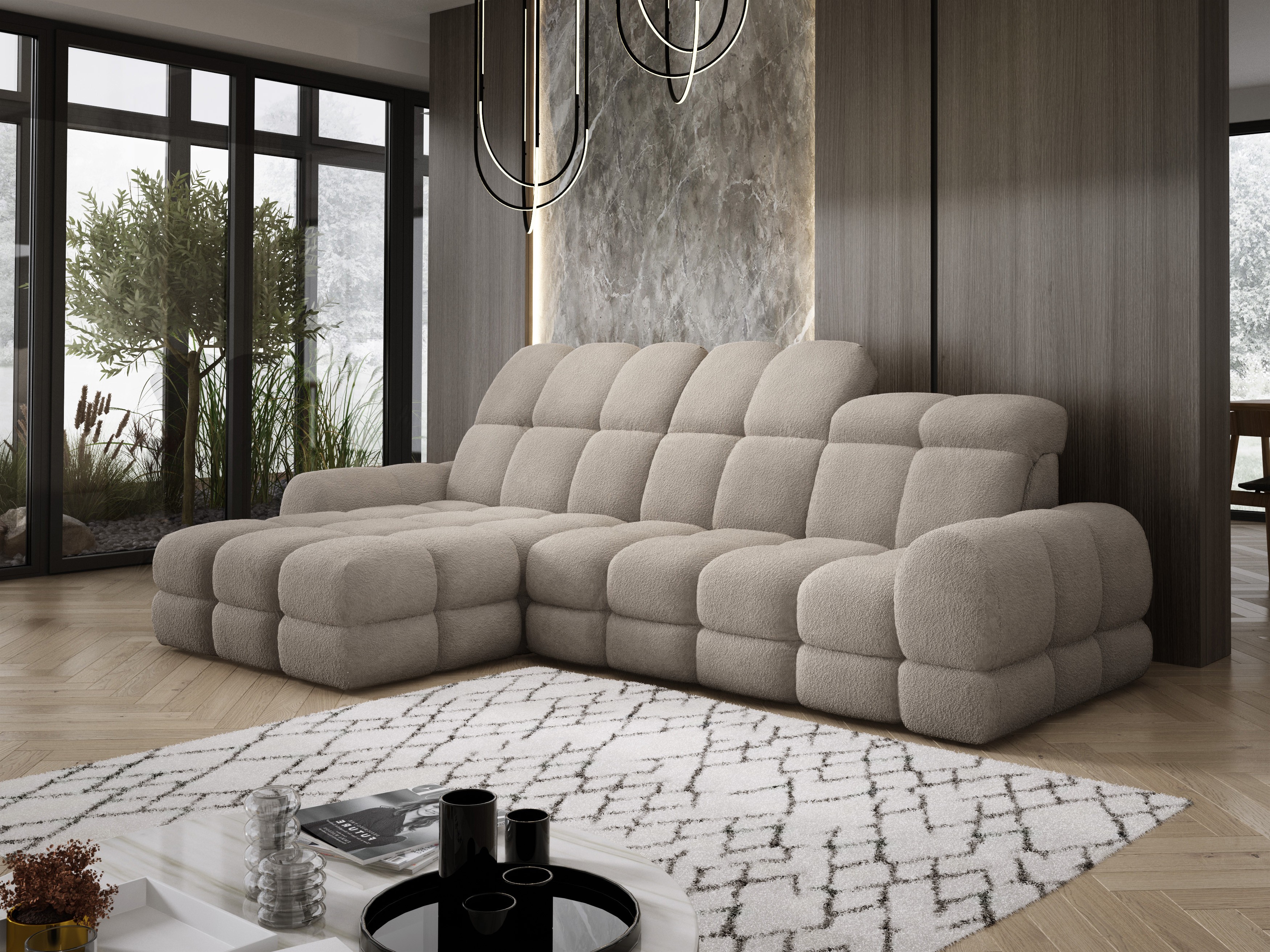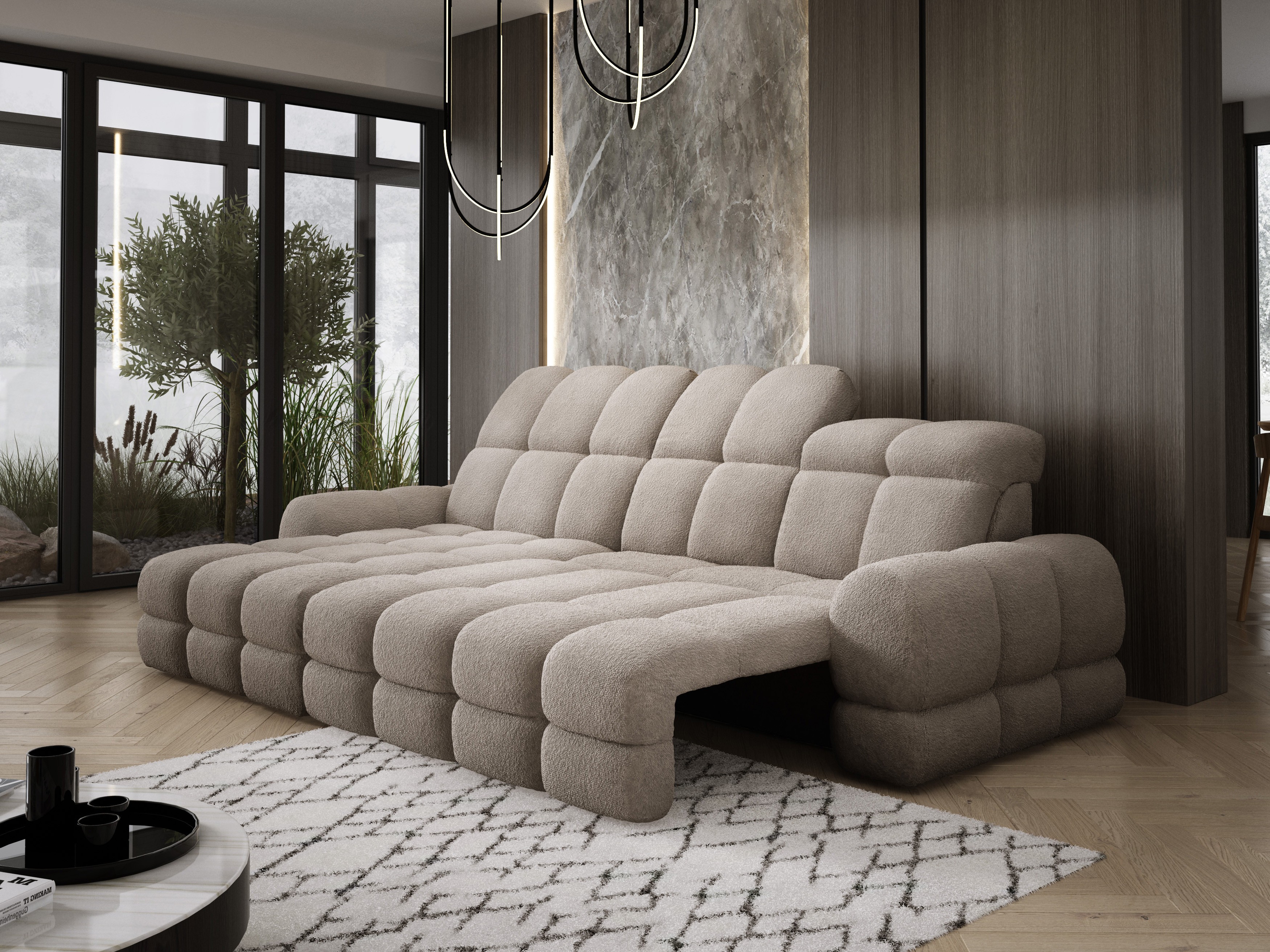 Model został wyposażony w elektrycznie rozkładaną funkcję spania, która w kilka chwil zamienia narożnik w komfortowe łóżko – idealne do codziennego relaksu lub dla gości.