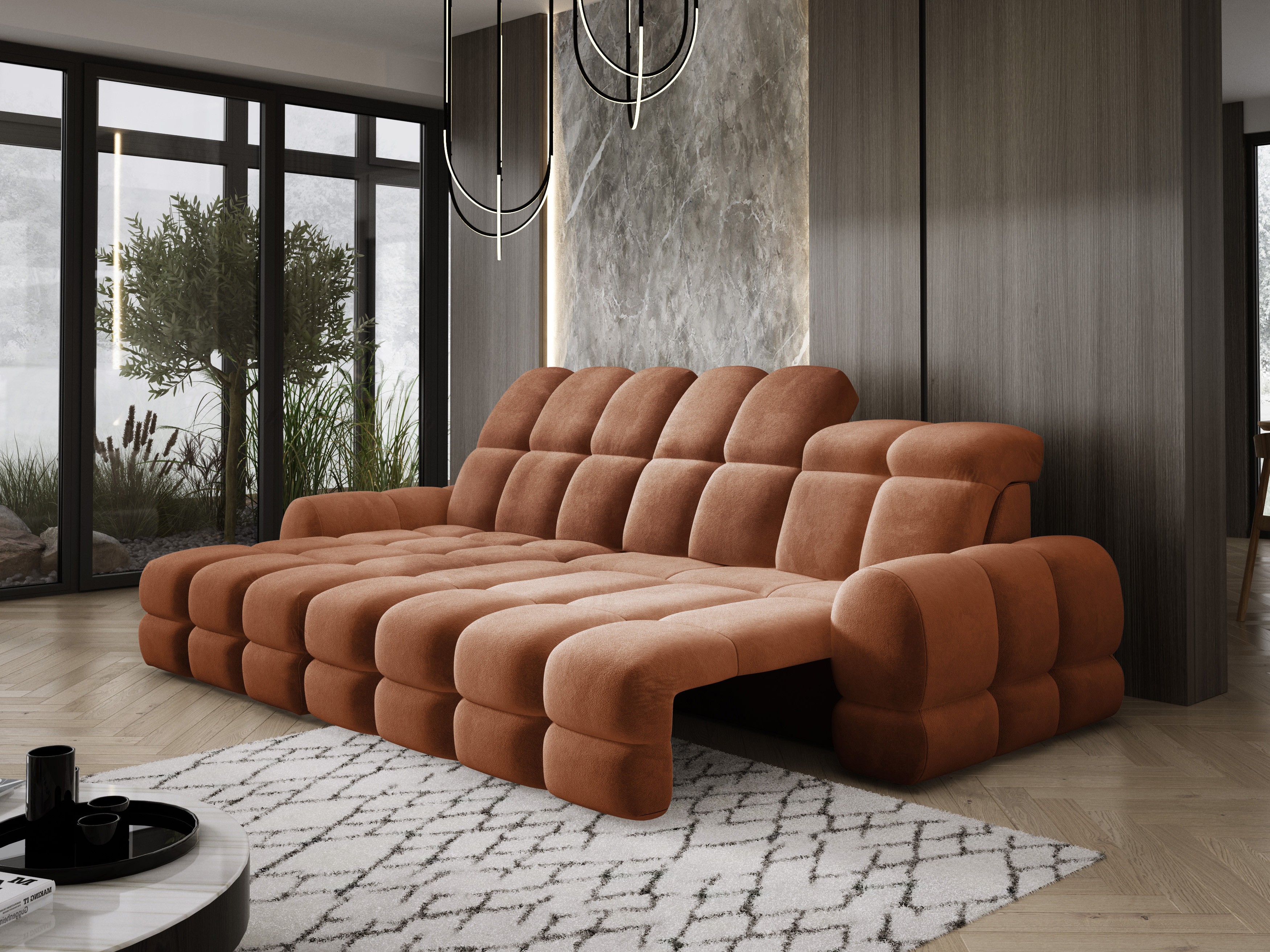 Model został wyposażony w elektrycznie rozkładaną funkcję spania, która w kilka chwil zamienia narożnik w komfortowe łóżko – idealne do codziennego relaksu lub dla gości.