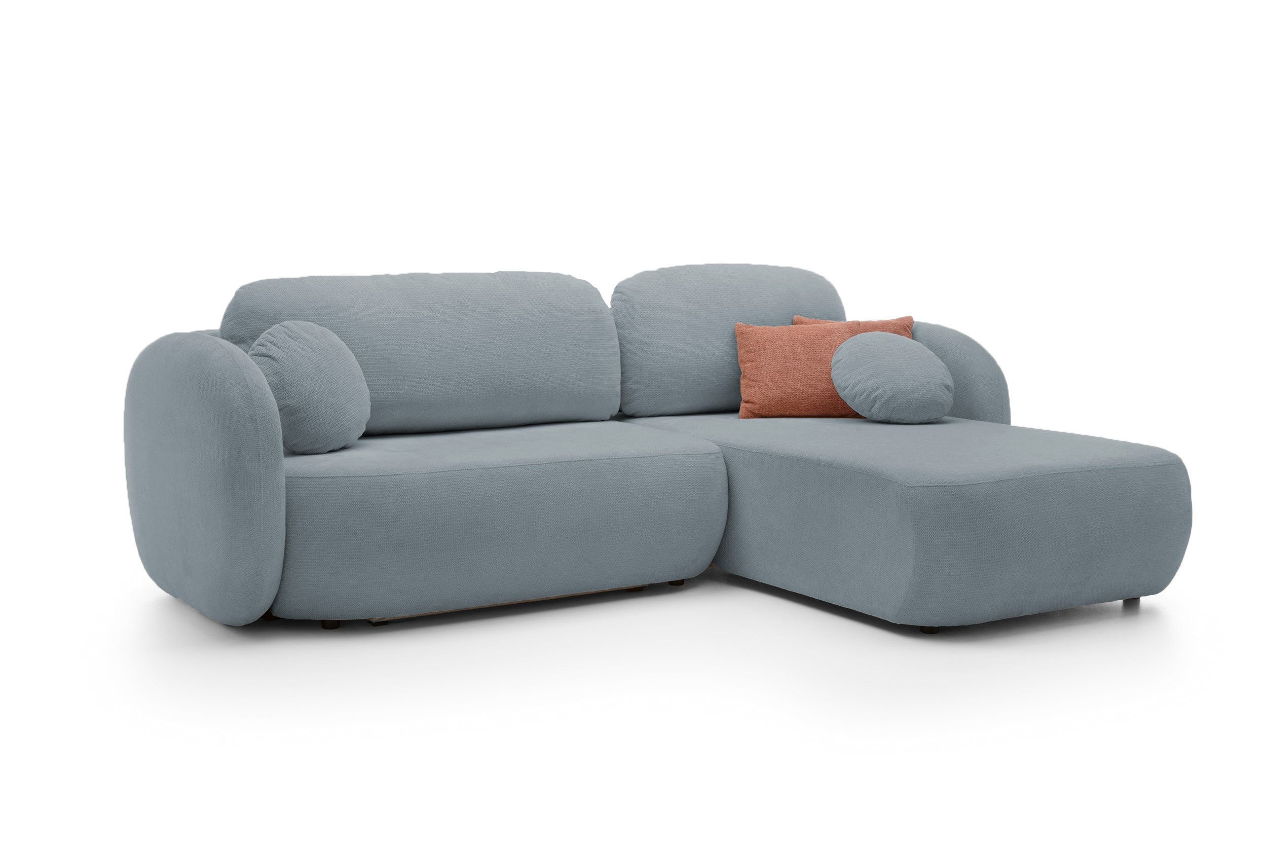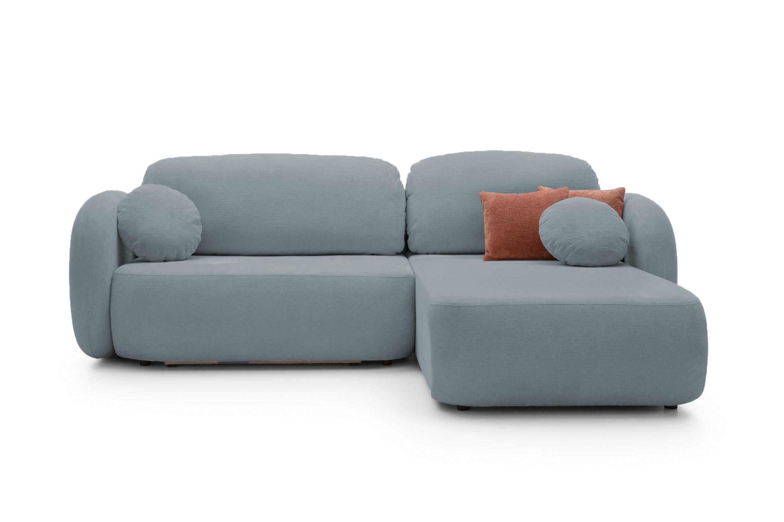 Prześliczny, mięciutki narożnik OLIO to idealny wybór na udany wypoczynek. Jego przytulne, zaokrąglone kształty sprawiają, że prezentuje się miękko i niezwykle wygodnie, a miła dla ciała tkanina umila codzienny relaks. Obła forma narożnika zwiększa bezpieczeństwo w obecności dzieci – zaokrąglone krawędzie są miękkie i subtelne, nie stwarzając zagrożenia.