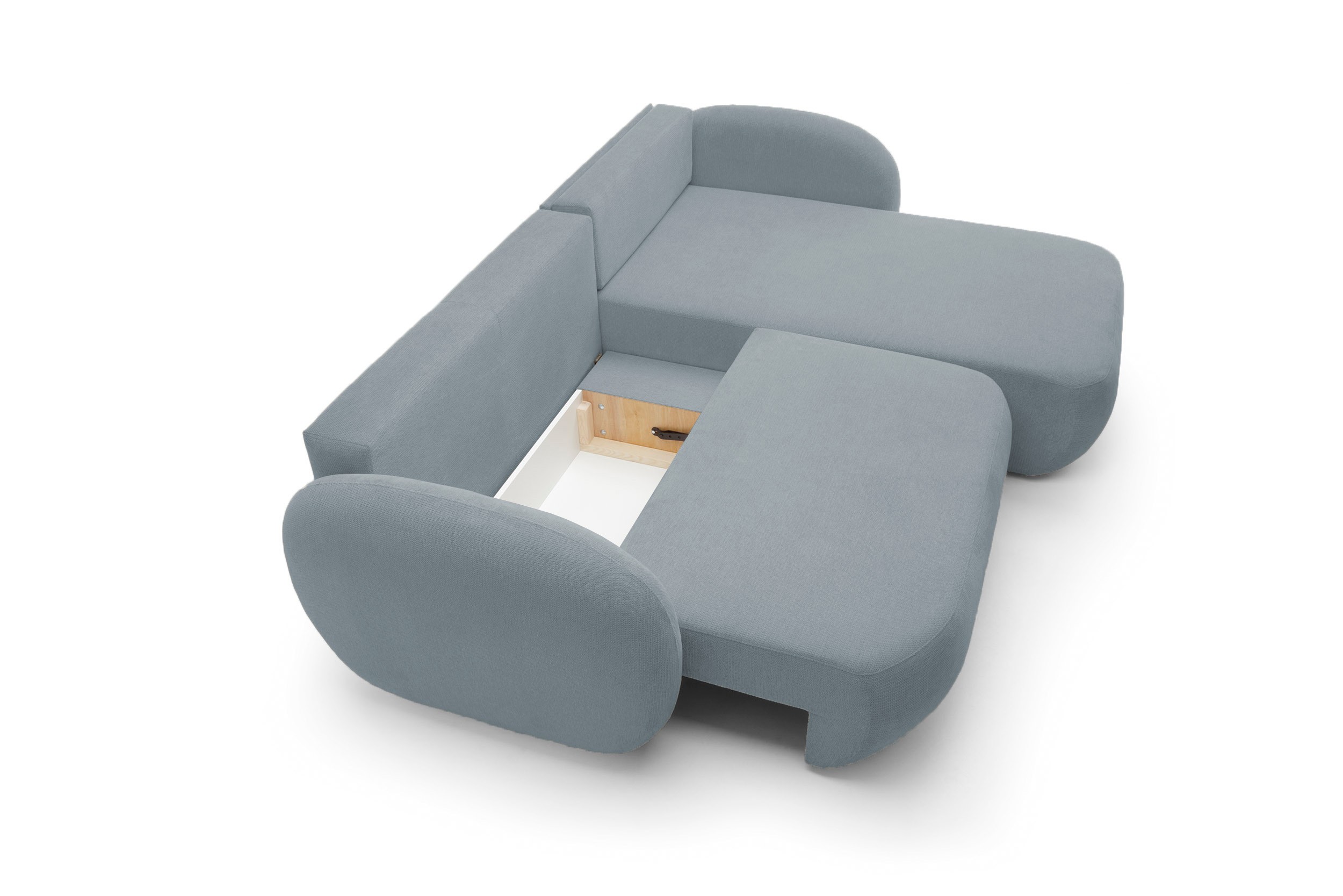 Narożnik OLIO to elegancki i funkcjonalny mebel, idealny do nowoczesnych wnętrz. Wyposażony w praktyczny pojemnik na pościel, ułatwia przechowywanie i utrzymanie porządku.