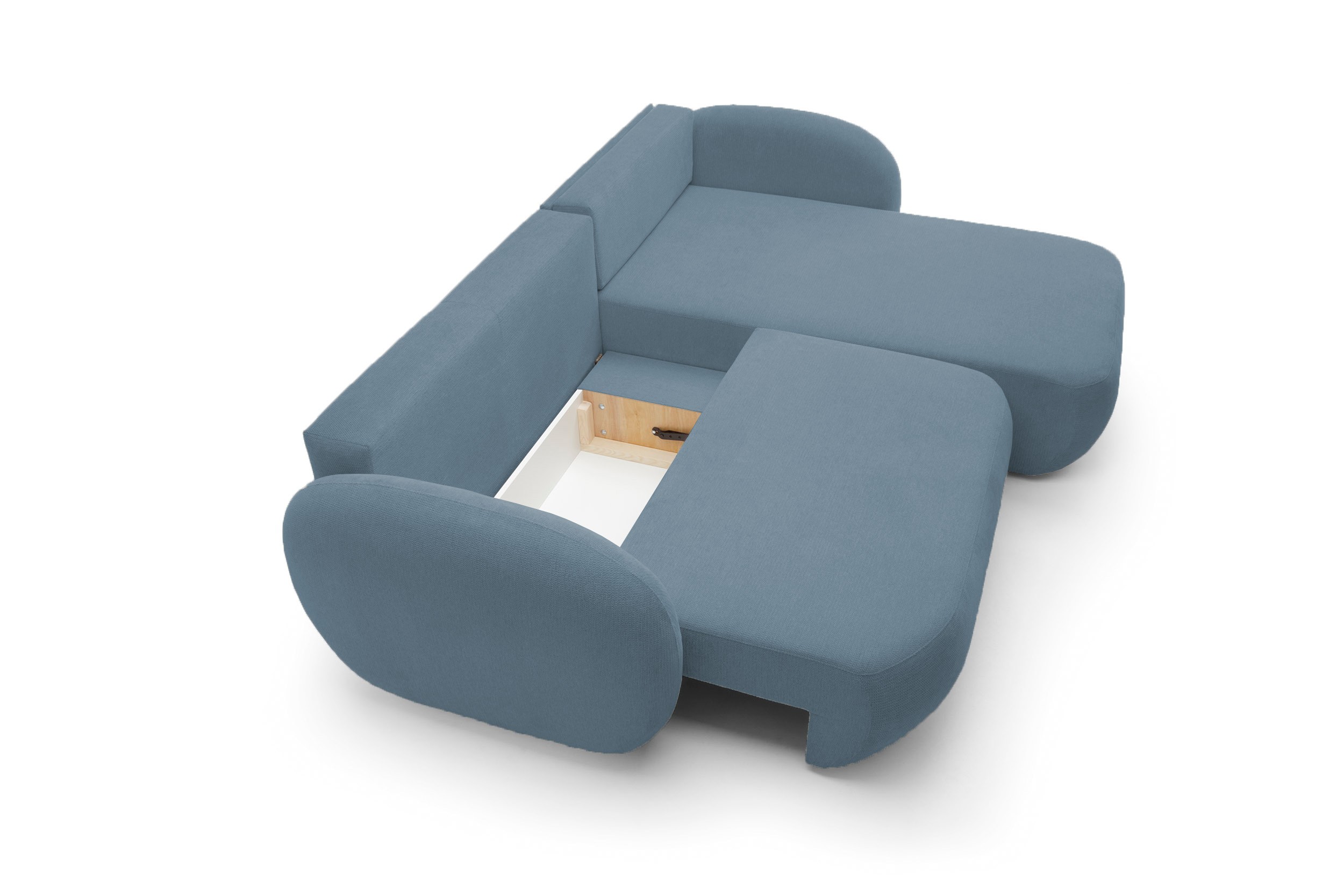 Narożnik OLIO to elegancki i funkcjonalny mebel, idealny do nowoczesnych wnętrz. Wyposażony w praktyczny pojemnik na pościel, ułatwia przechowywanie i utrzymanie porządku.