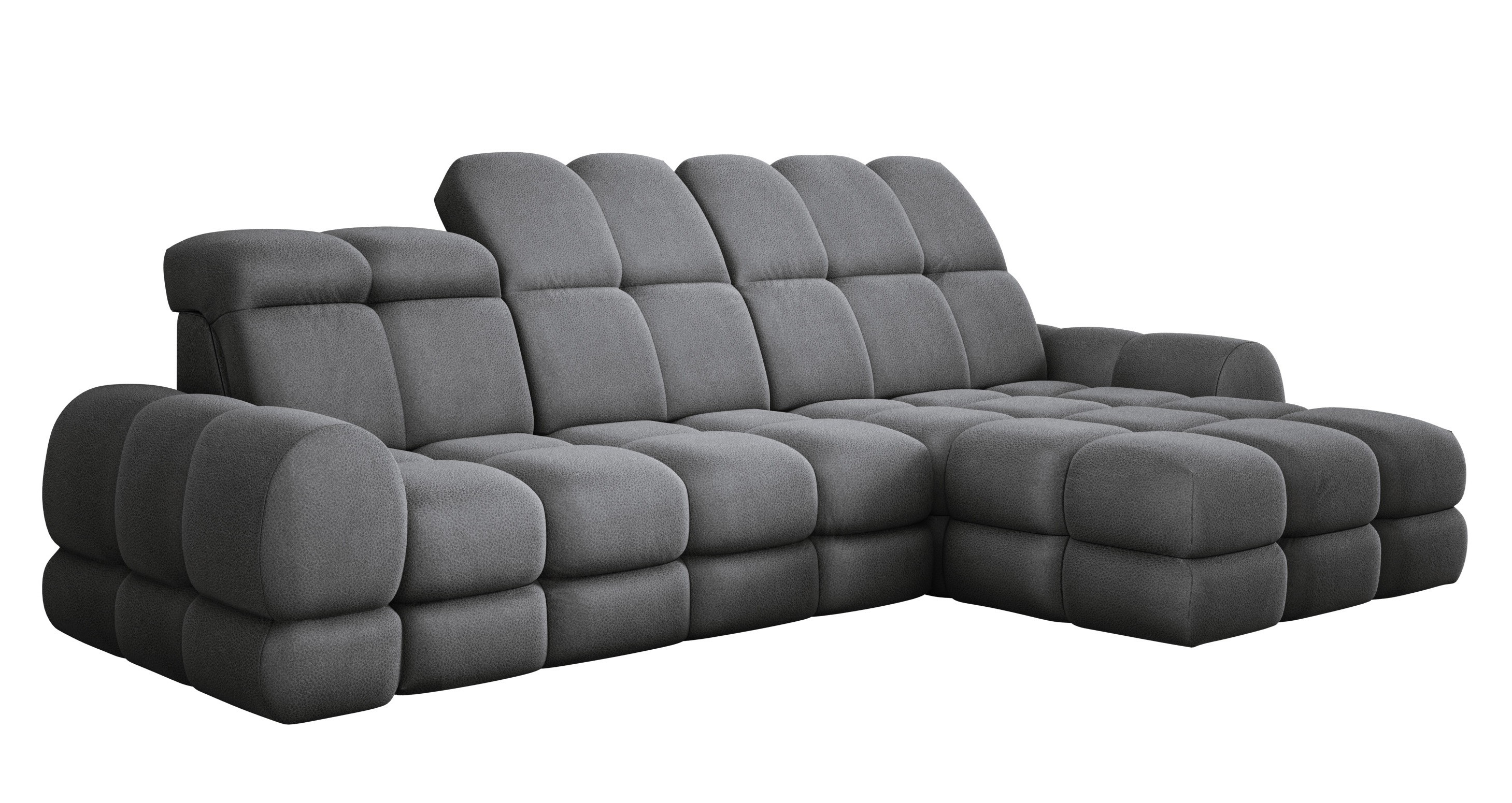 Model został wyposażony w elektrycznie rozkładaną funkcję spania, która w kilka chwil zamienia narożnik w komfortowe łóżko – idealne do codziennego relaksu lub dla gości.