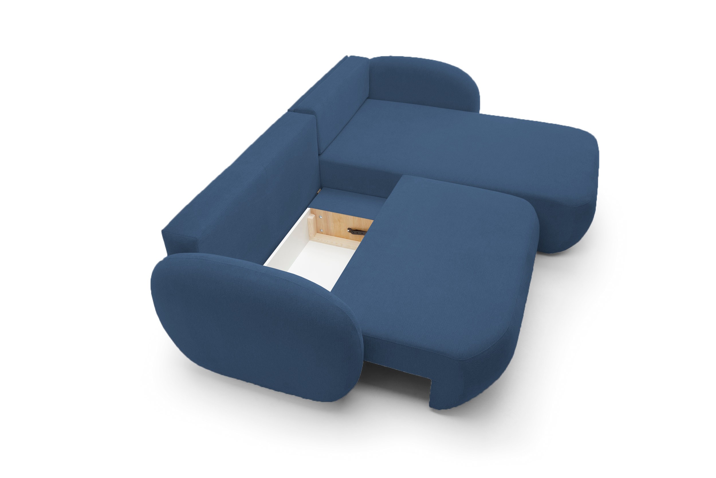 Narożnik OLIO to elegancki i funkcjonalny mebel, idealny do nowoczesnych wnętrz. Wyposażony w praktyczny pojemnik na pościel, ułatwia przechowywanie i utrzymanie porządku.