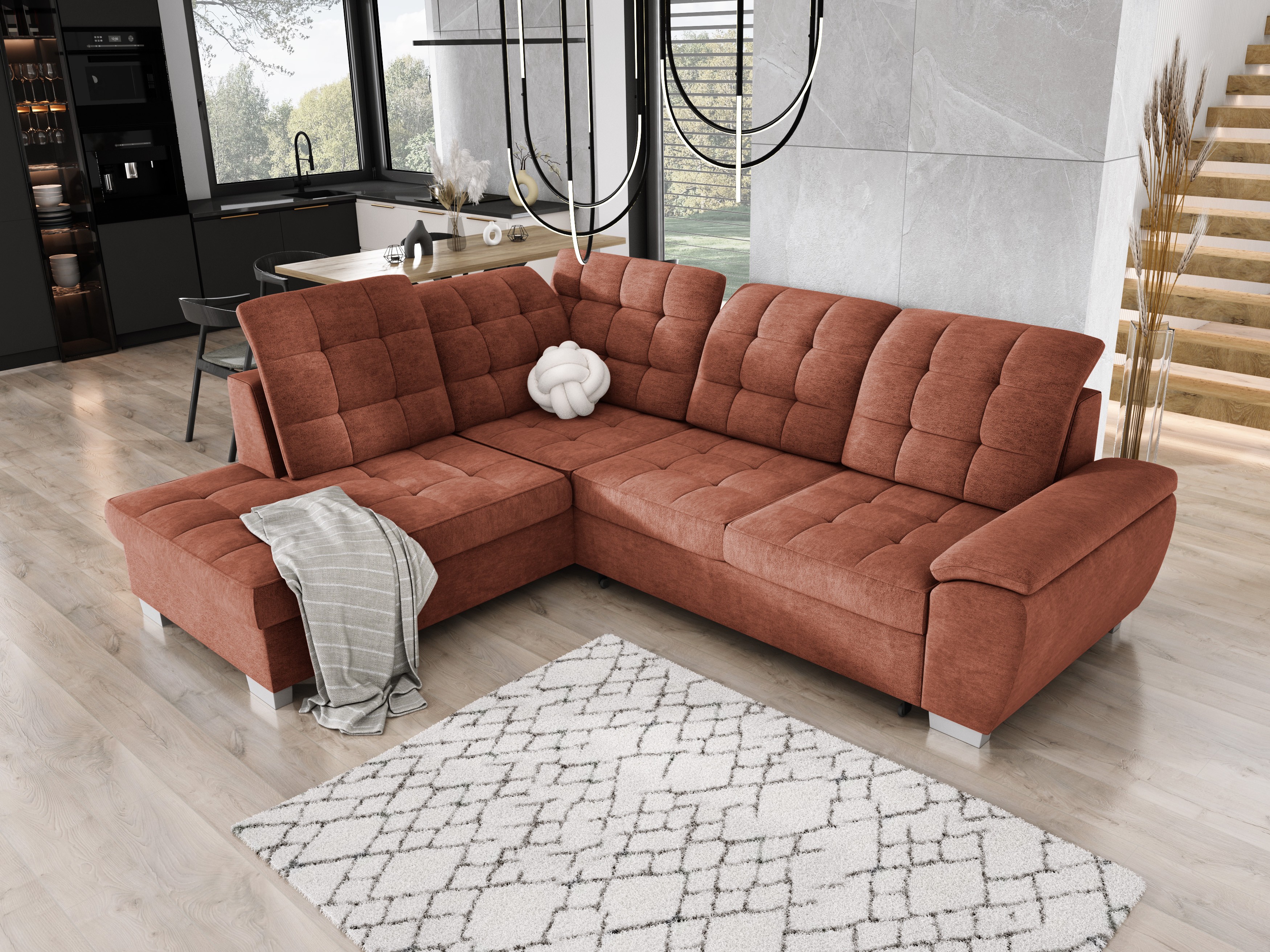 Funkcja spania typu Delfin pozwala w łatwy sposób przekształcić narożnik w pełnowymiarowe łóżko – idealne na niespodziewane wizyty gości.