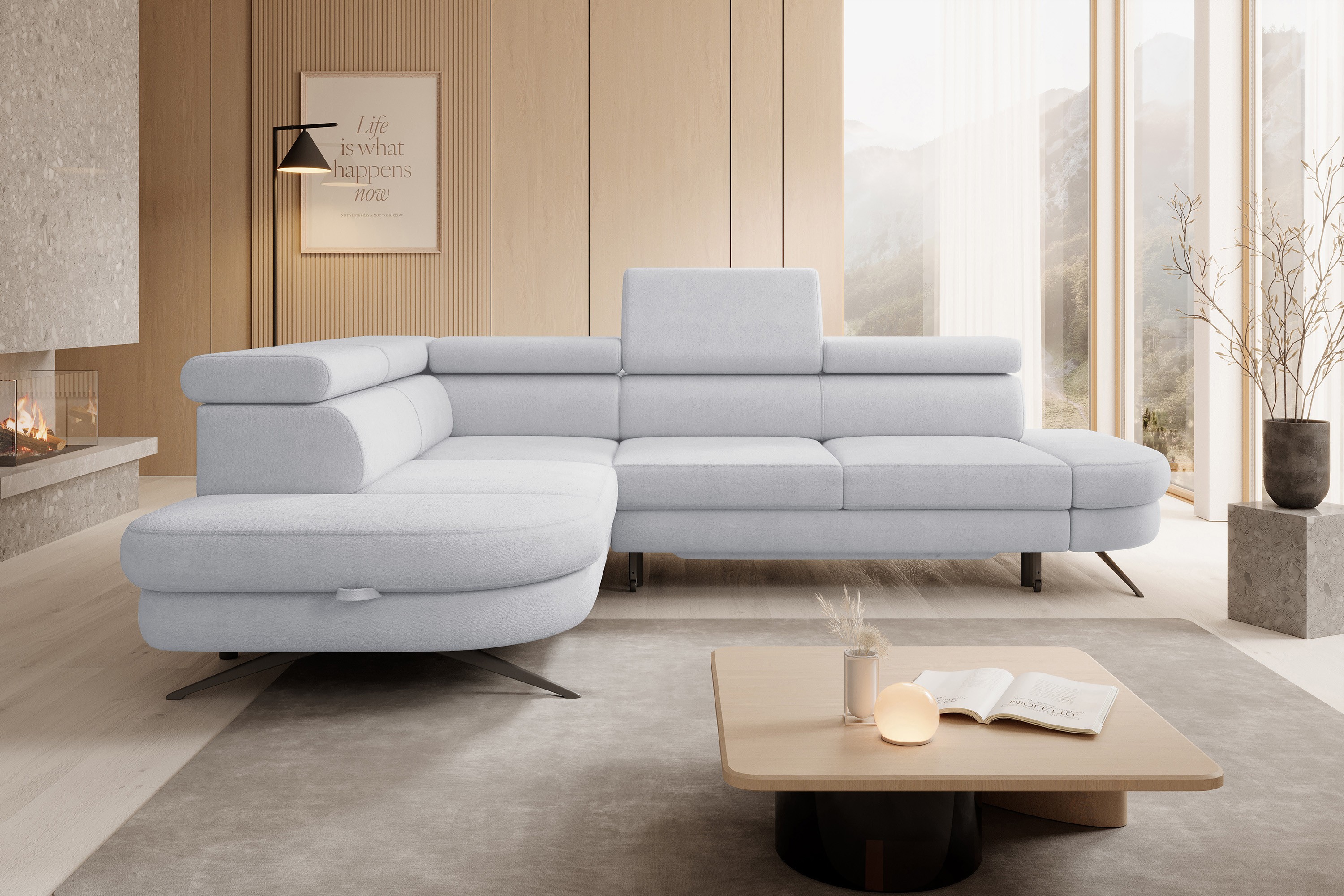 Narożnik OTIS L Lewostronny Regulowane Zagłówki wolnostojący tkanina AURORA 01 WERSAL