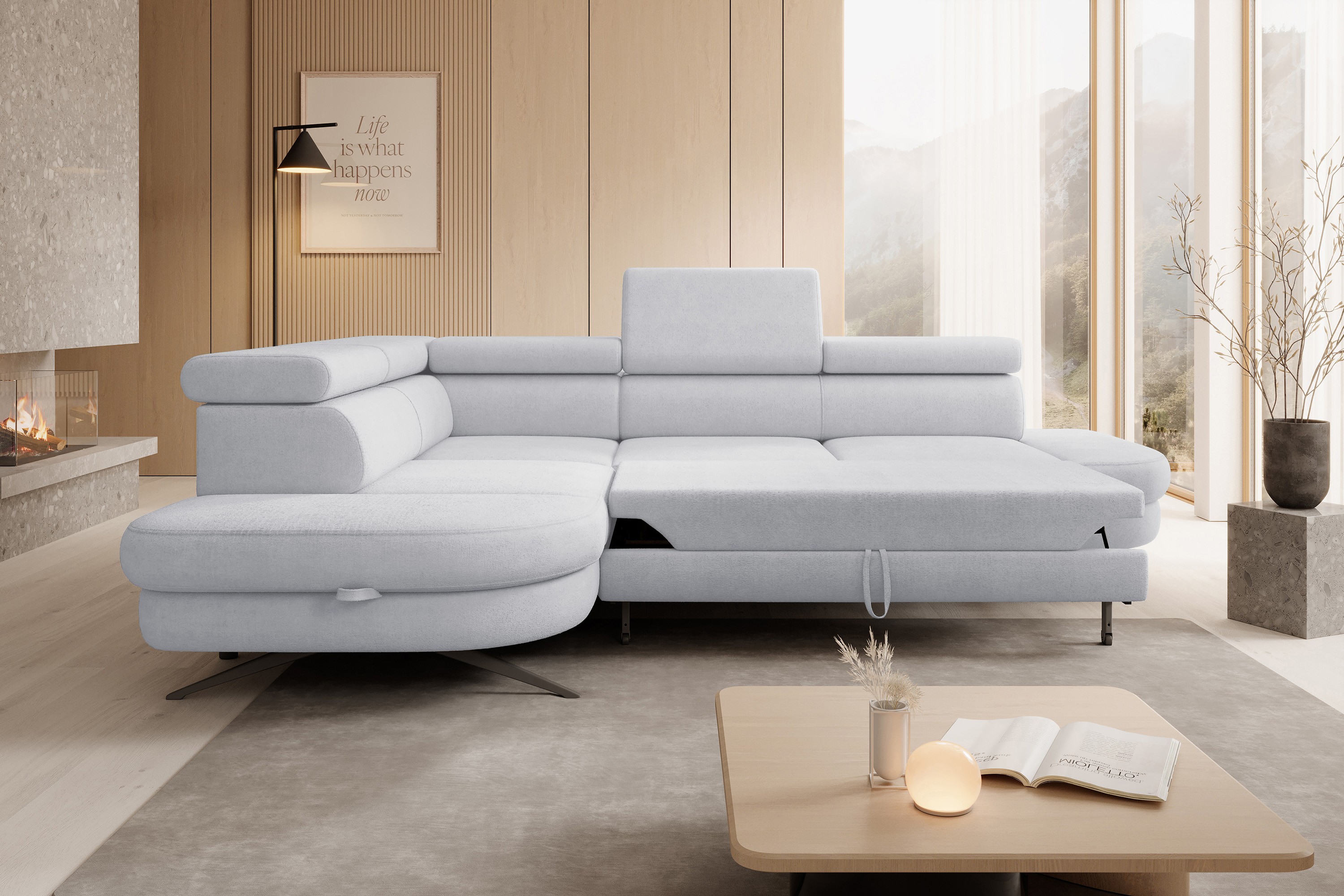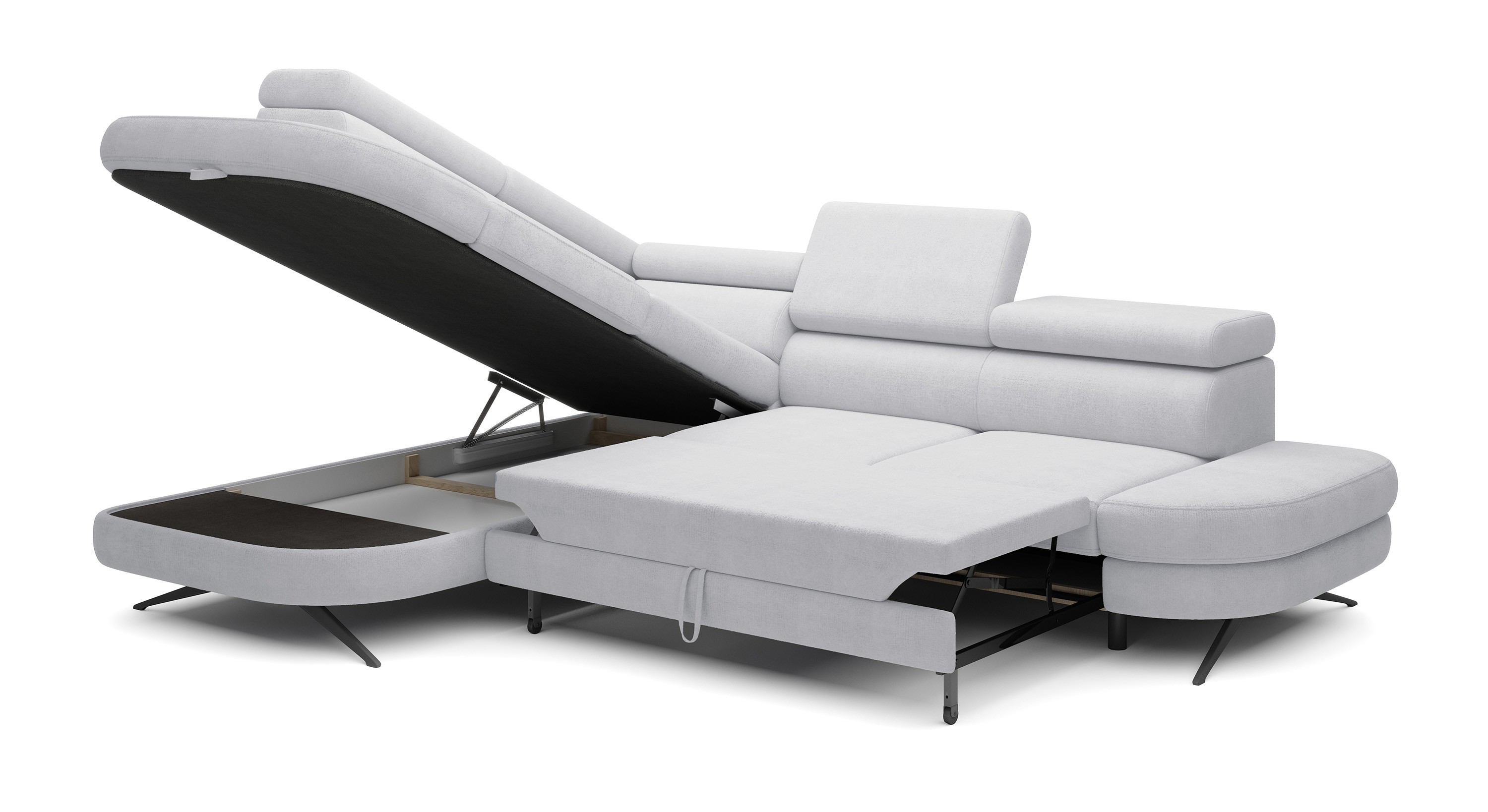Narożnik OTIS został wyposażony w funkcję spania, dzięki czemu w łatwy sposób można zamienić go w przestronne i wygodne łóżko – idealne dla gości lub na co dzień.