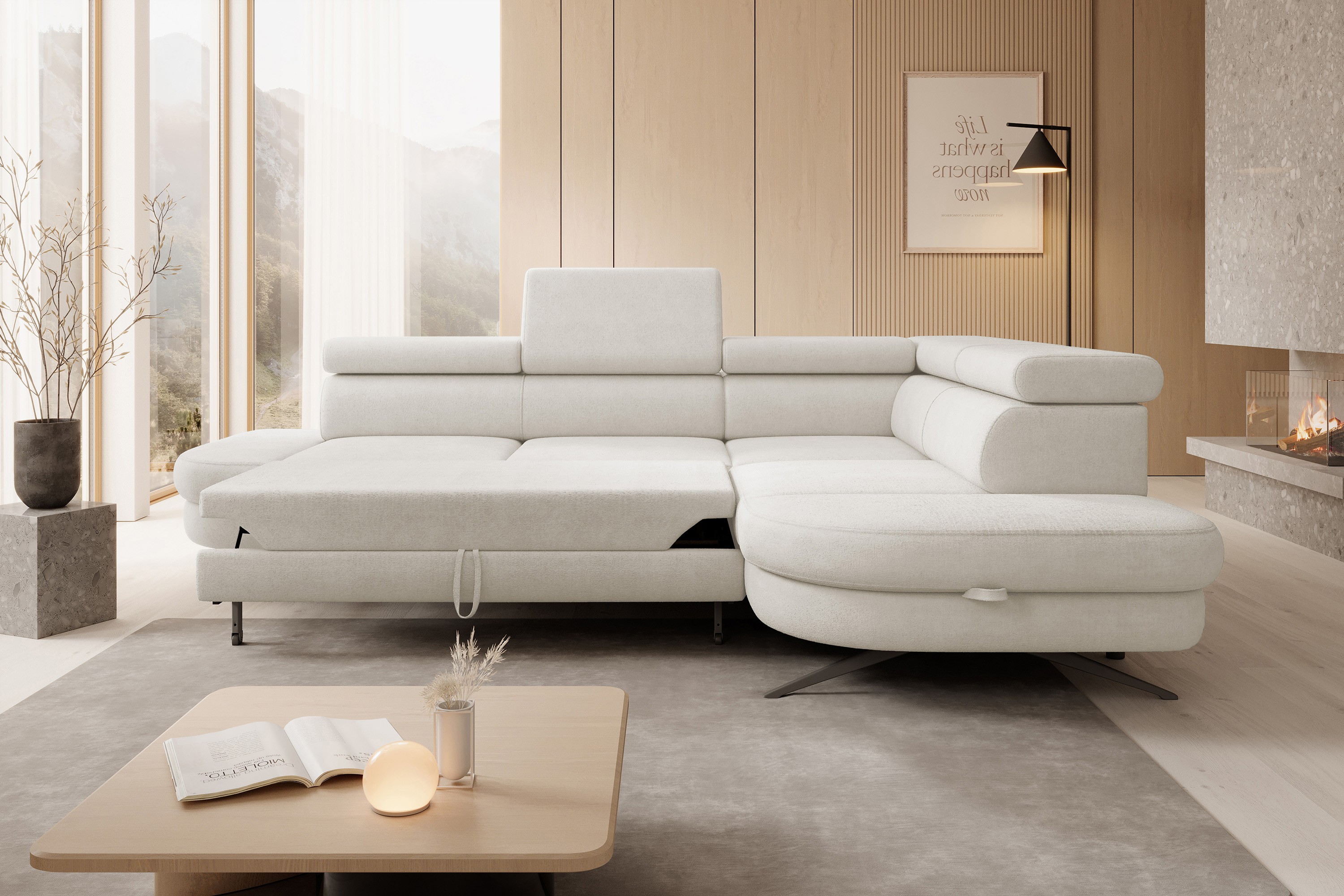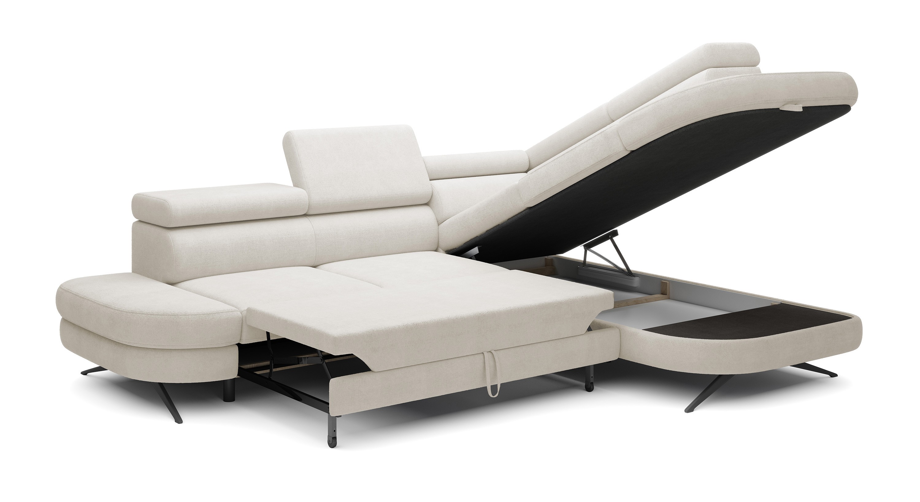 Narożnik OTIS został wyposażony w funkcję spania, dzięki czemu w łatwy sposób można zamienić go w przestronne i wygodne łóżko – idealne dla gości lub na co dzień.