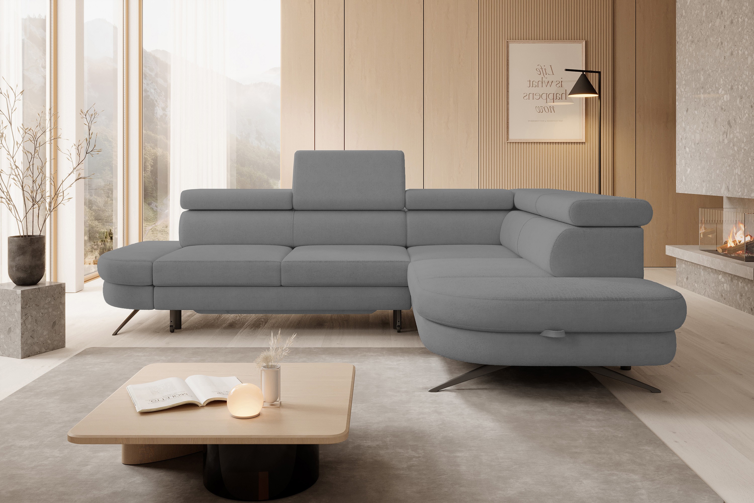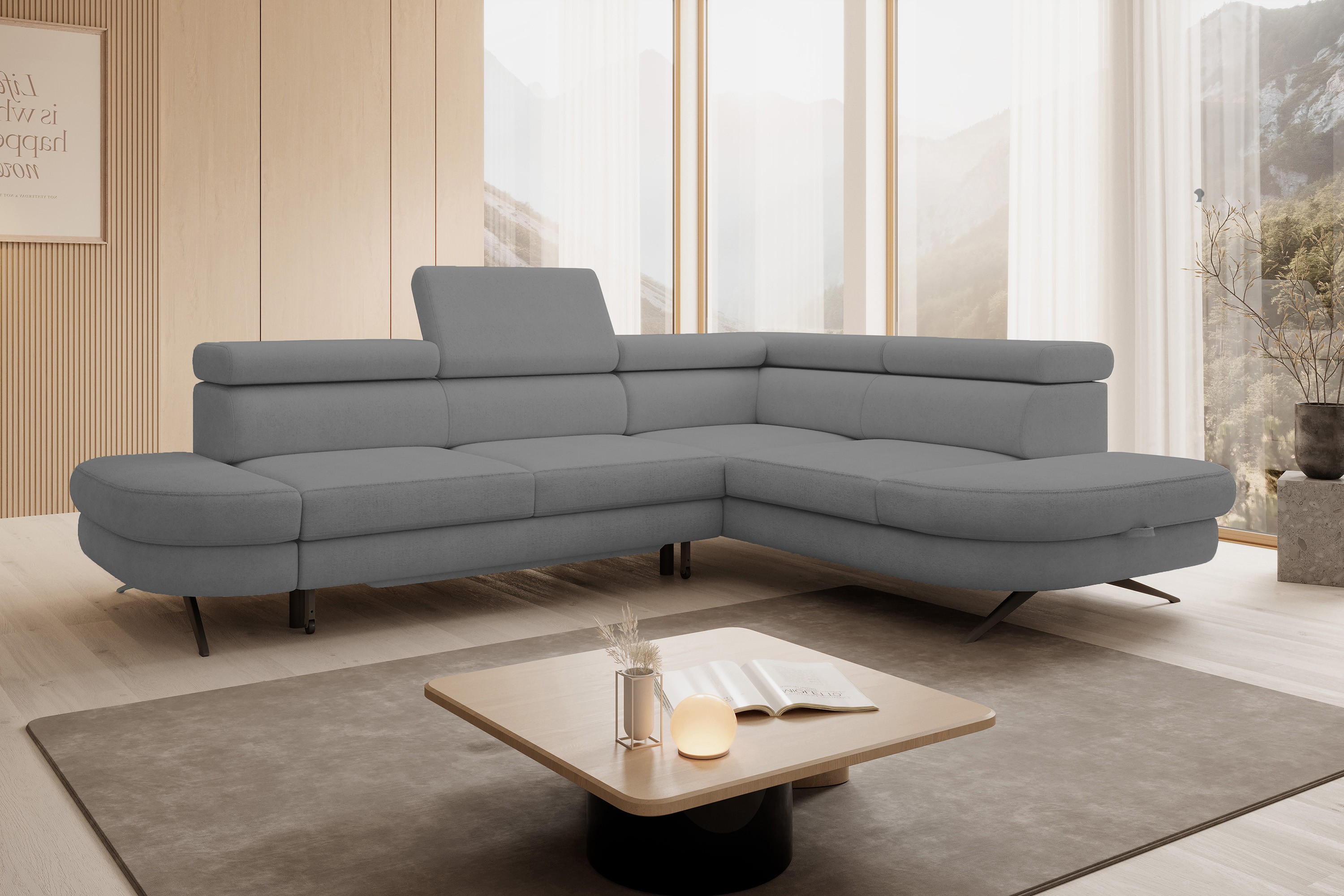 Narożnik OTIS L Prawostronny Regulowane Zagłówki wolnostojący tkanina AURORA 09 WERSAL