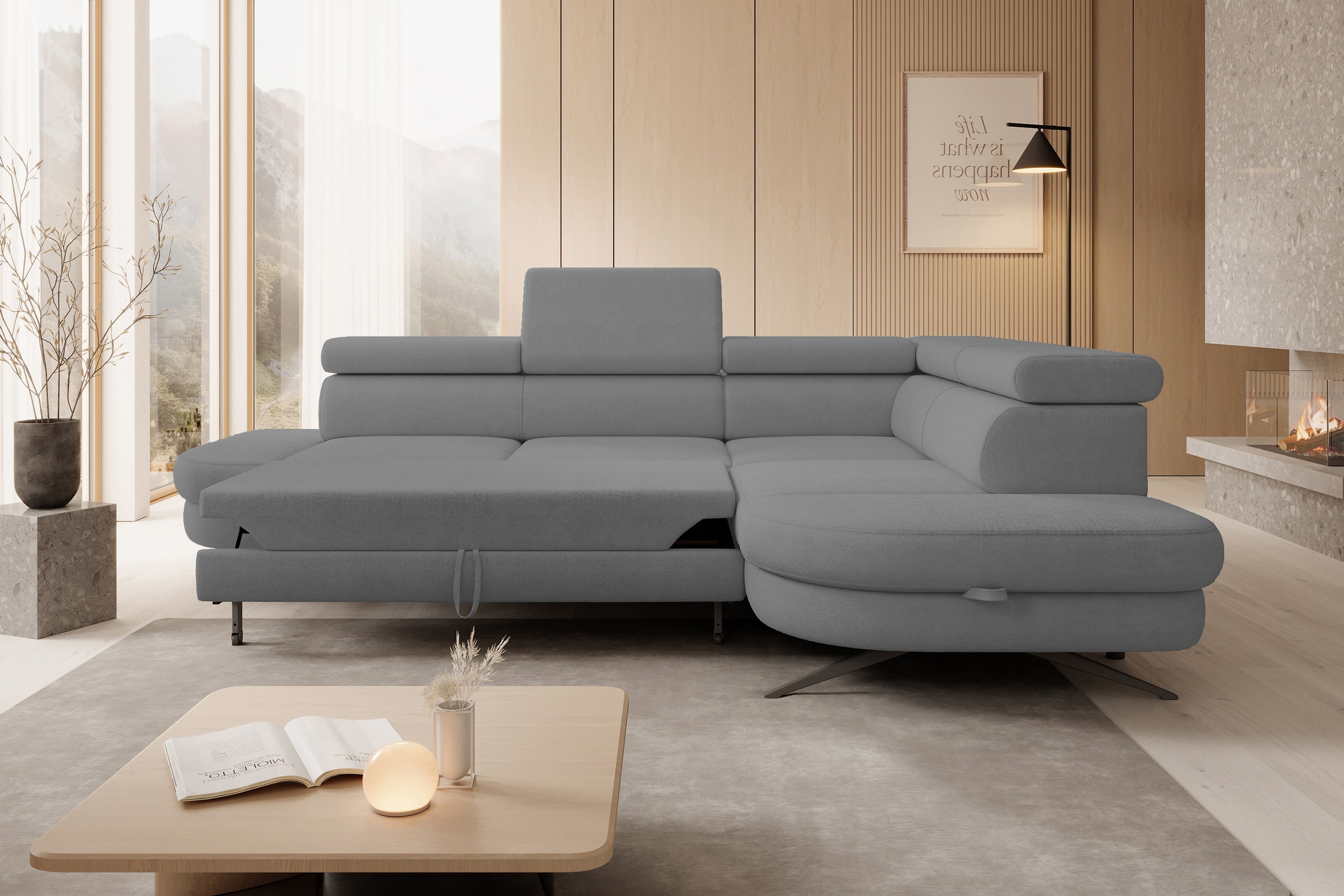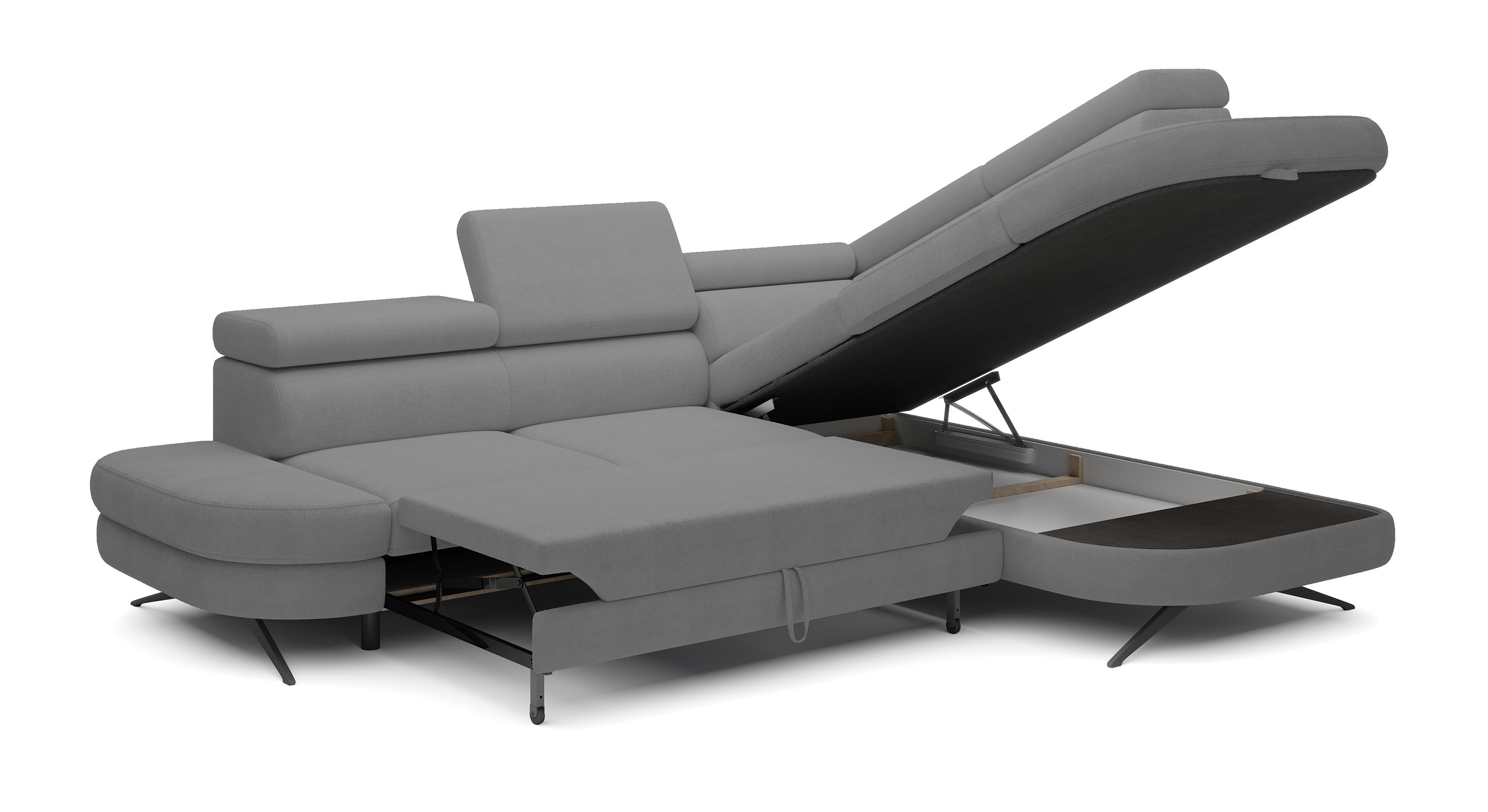 Narożnik OTIS został wyposażony w funkcję spania, dzięki czemu w łatwy sposób można zamienić go w przestronne i wygodne łóżko – idealne dla gości lub na co dzień.