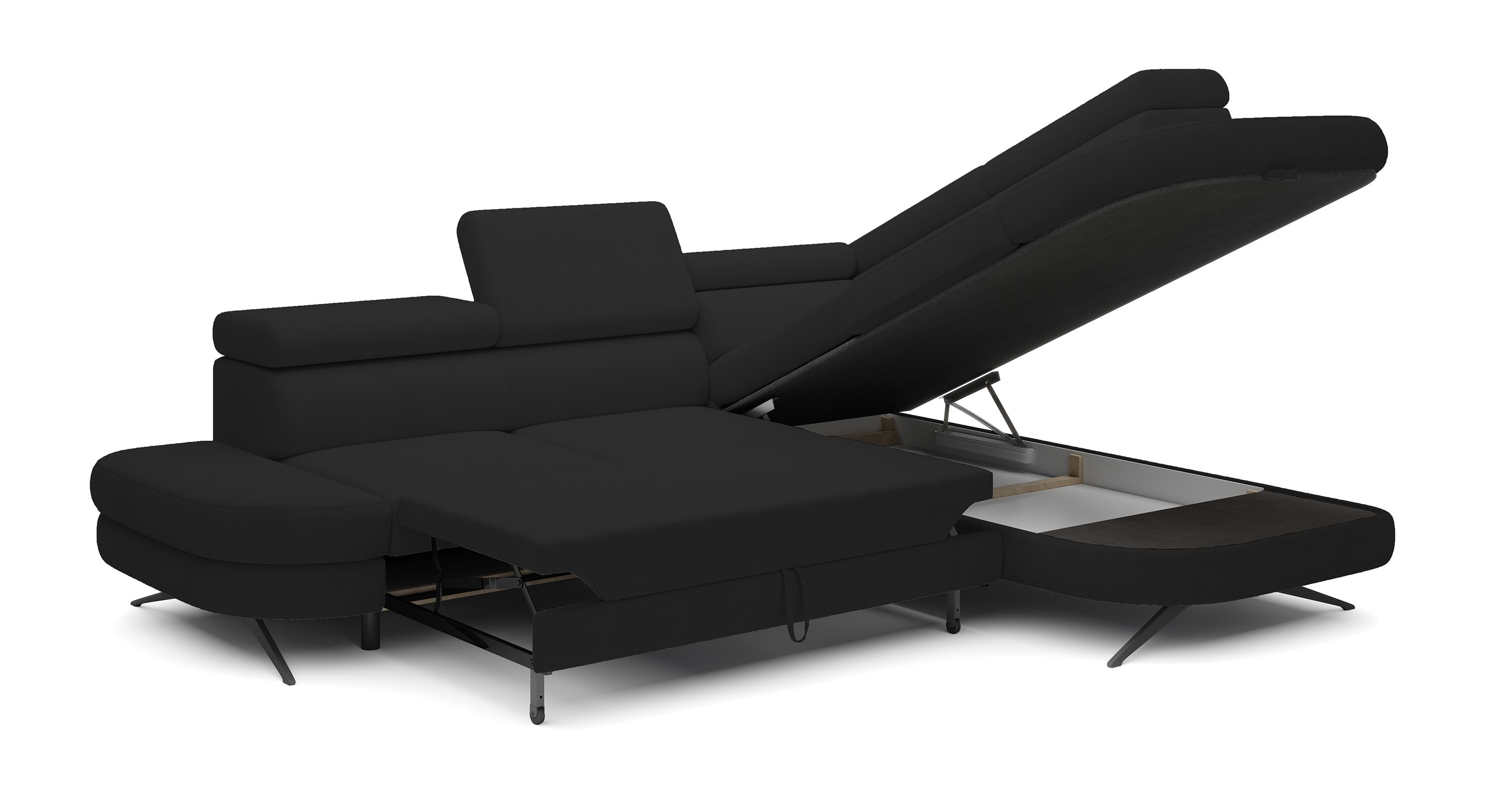 Narożnik OTIS został wyposażony w funkcję spania, dzięki czemu w łatwy sposób można zamienić go w przestronne i wygodne łóżko – idealne dla gości lub na co dzień.