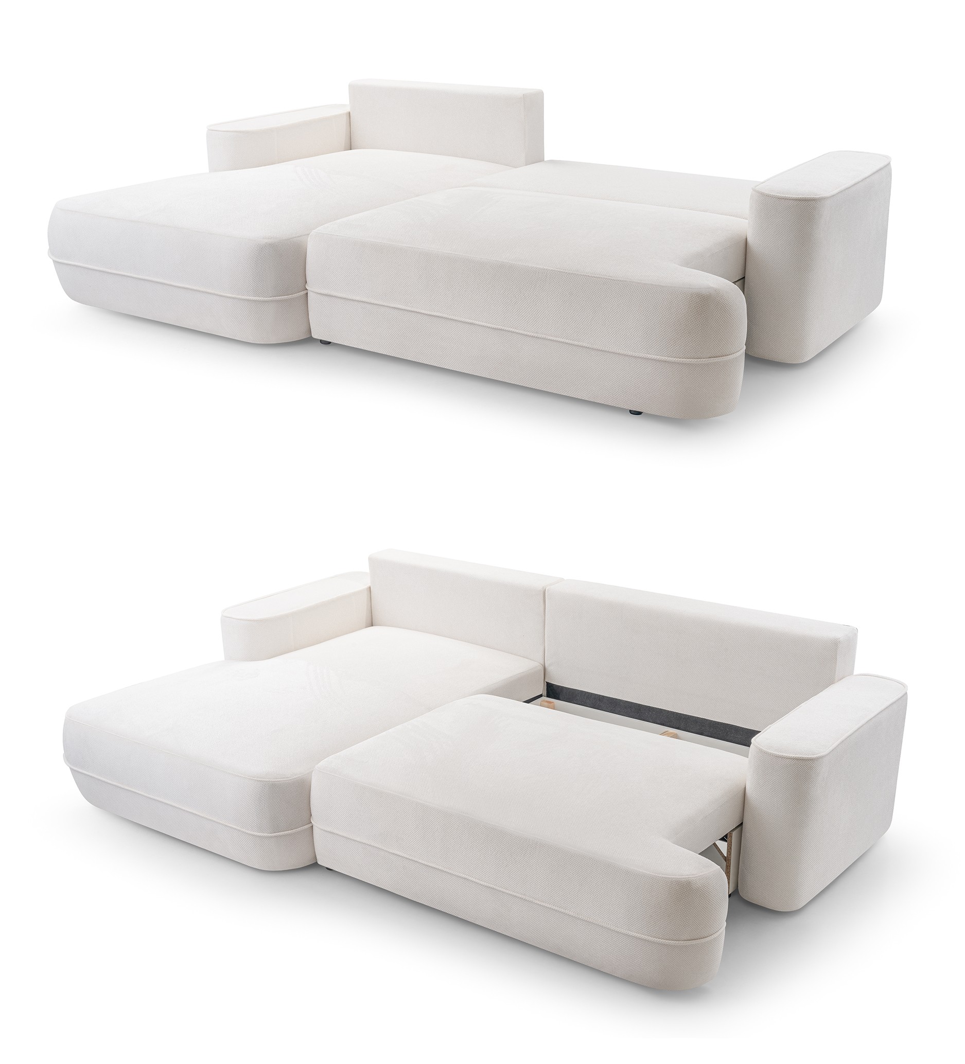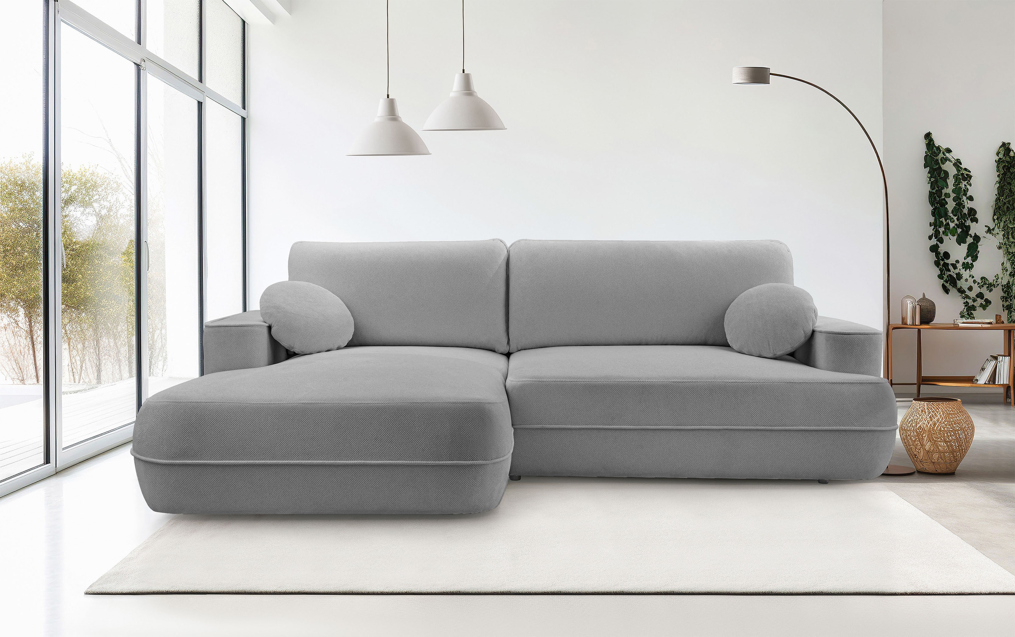 Narożnik FUEGO wolnostojący układ L strona Lewa z funkcją spania w tkaninie Bubble 06